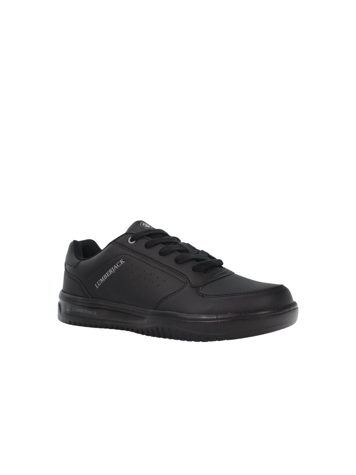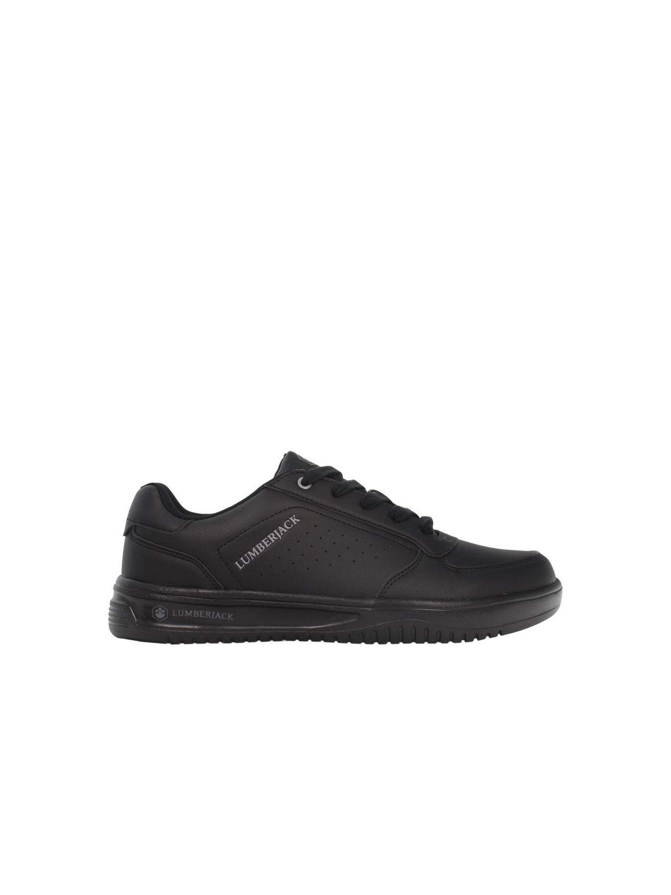 La sneaker LUMBERJACK Udemy 102243494 Total Black presenta una tomaia in materiale sintetico resistente con linee semplici e pulite, arricchita da microfori laterali che favoriscono la traspirazione.