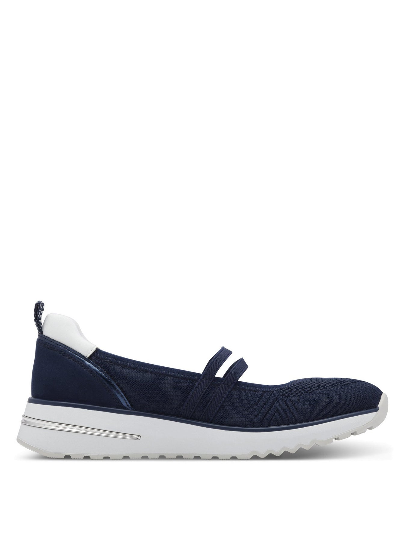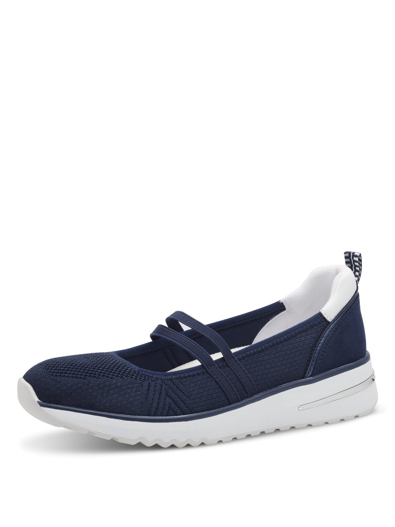 La ballerina MARCO TOZZI 2-22181-44 nella raffinata tonalità Navy Comb è il perfetto mix tra eleganza casual e comfort quotidiano. Il design slip-on è reso più dinamico dai doppi elastici incrociati sul collo del piede, che assicurano una calzata stabile e confortevole.