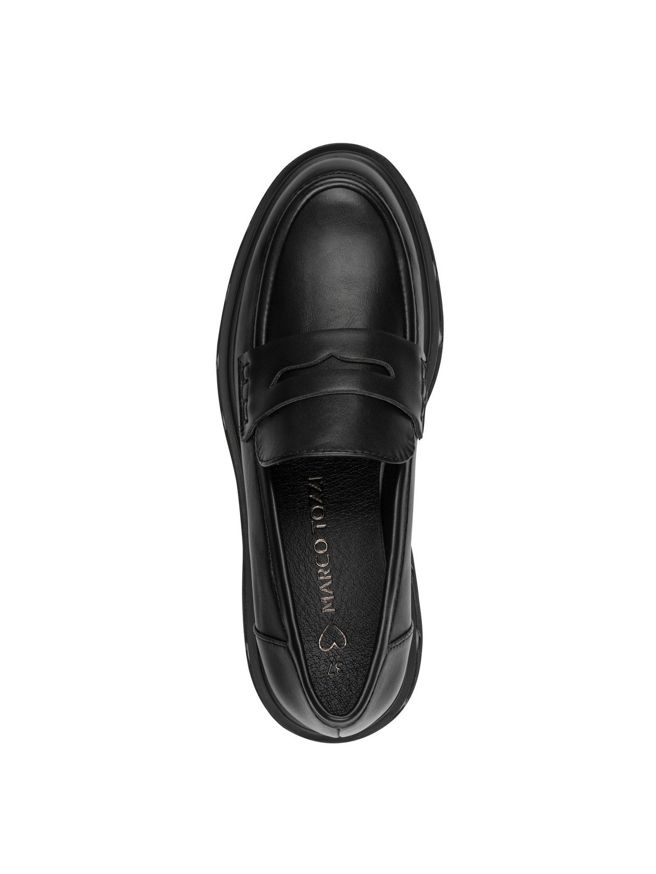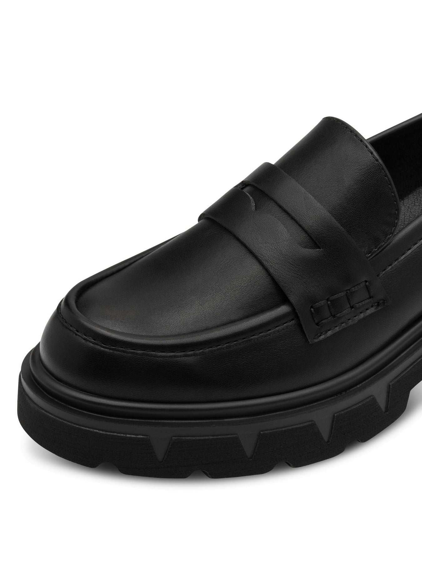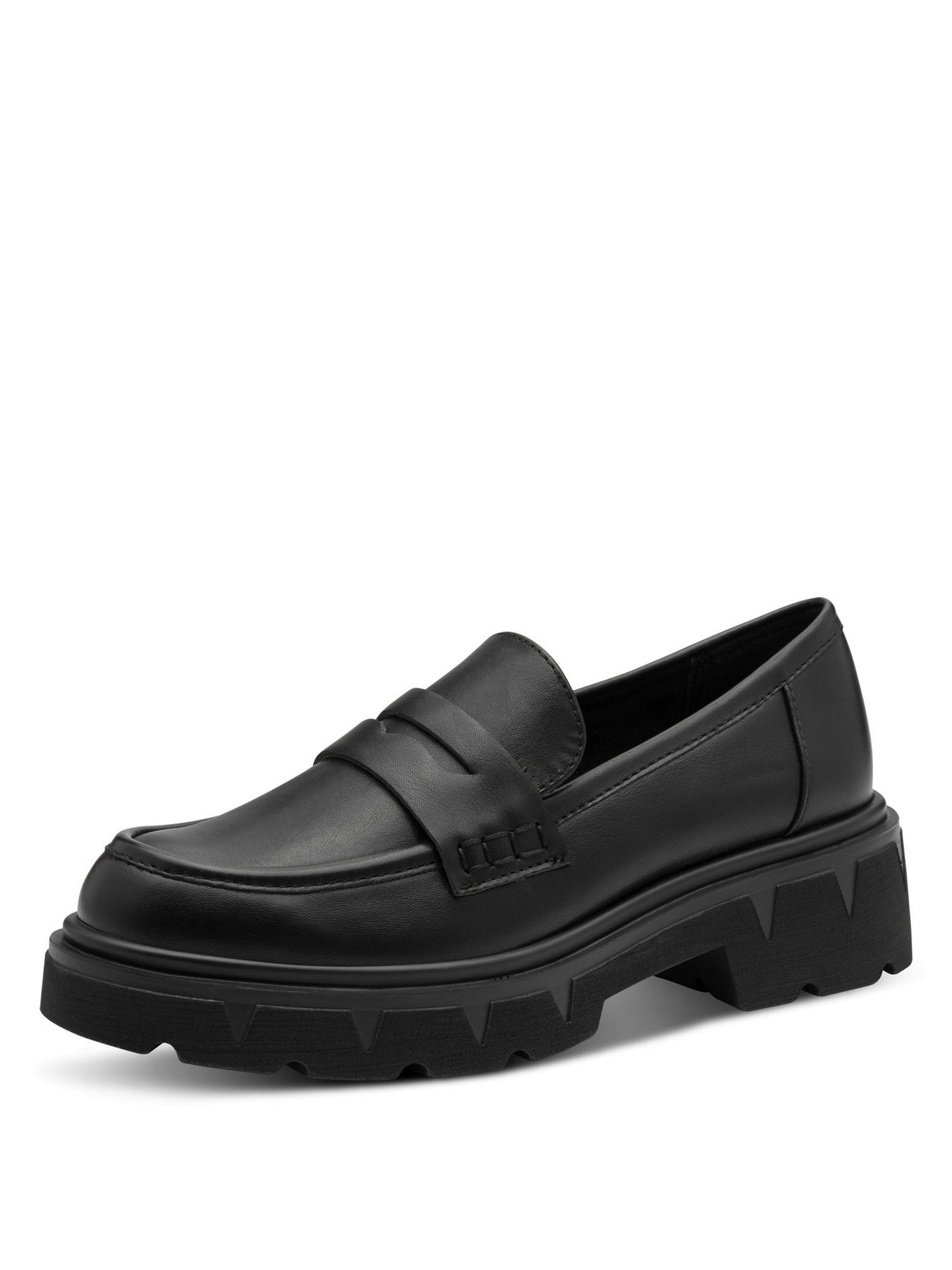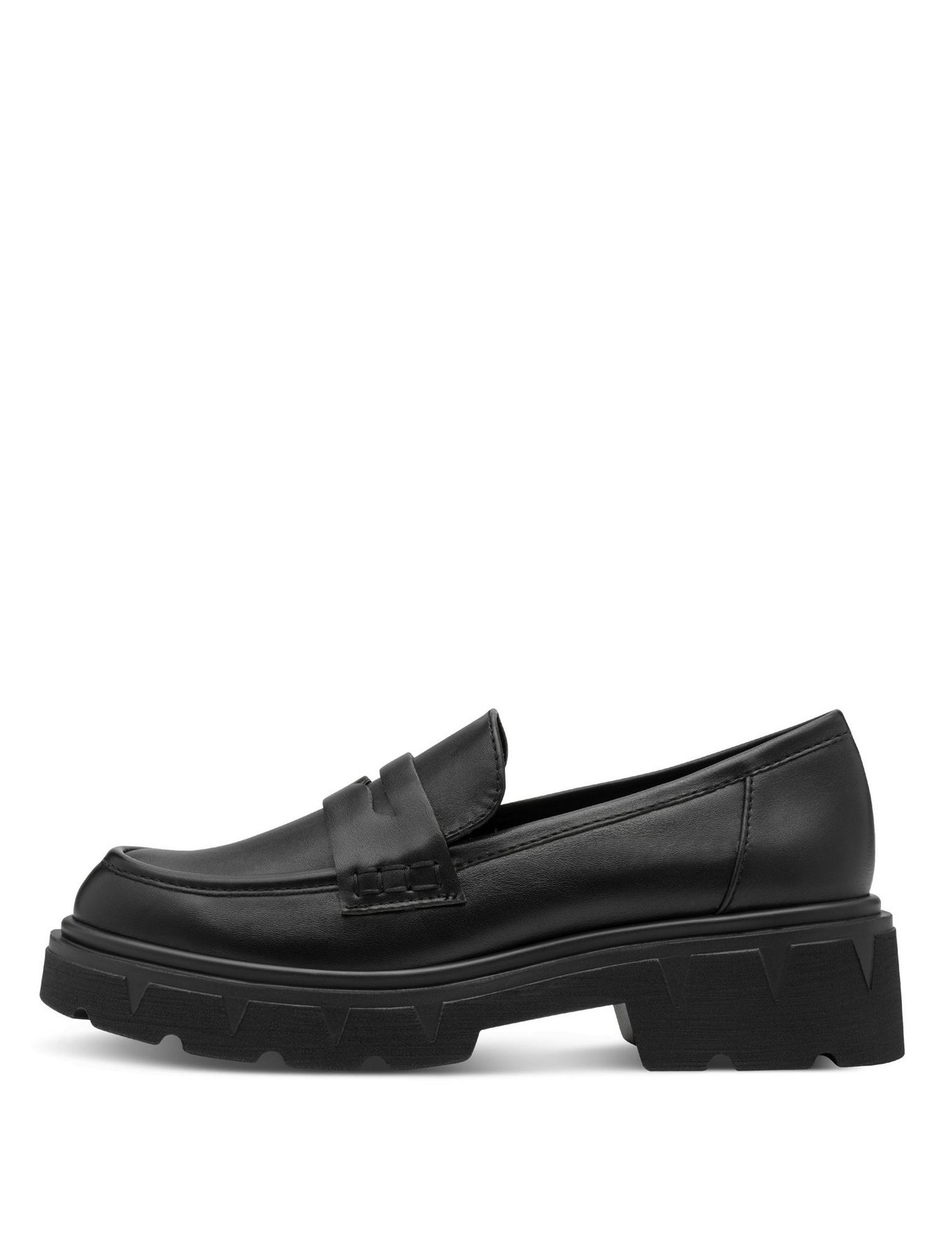 Il mocassino MARCO TOZZI 2-24717-45 in nero offre un look contemporaneo con linee pulite e una suola alta dal battistrada marcato. Realizzato in materiale sintetico di alta qualità, presenta una tomaia liscia con cuciture tono su tono e profilo classico.