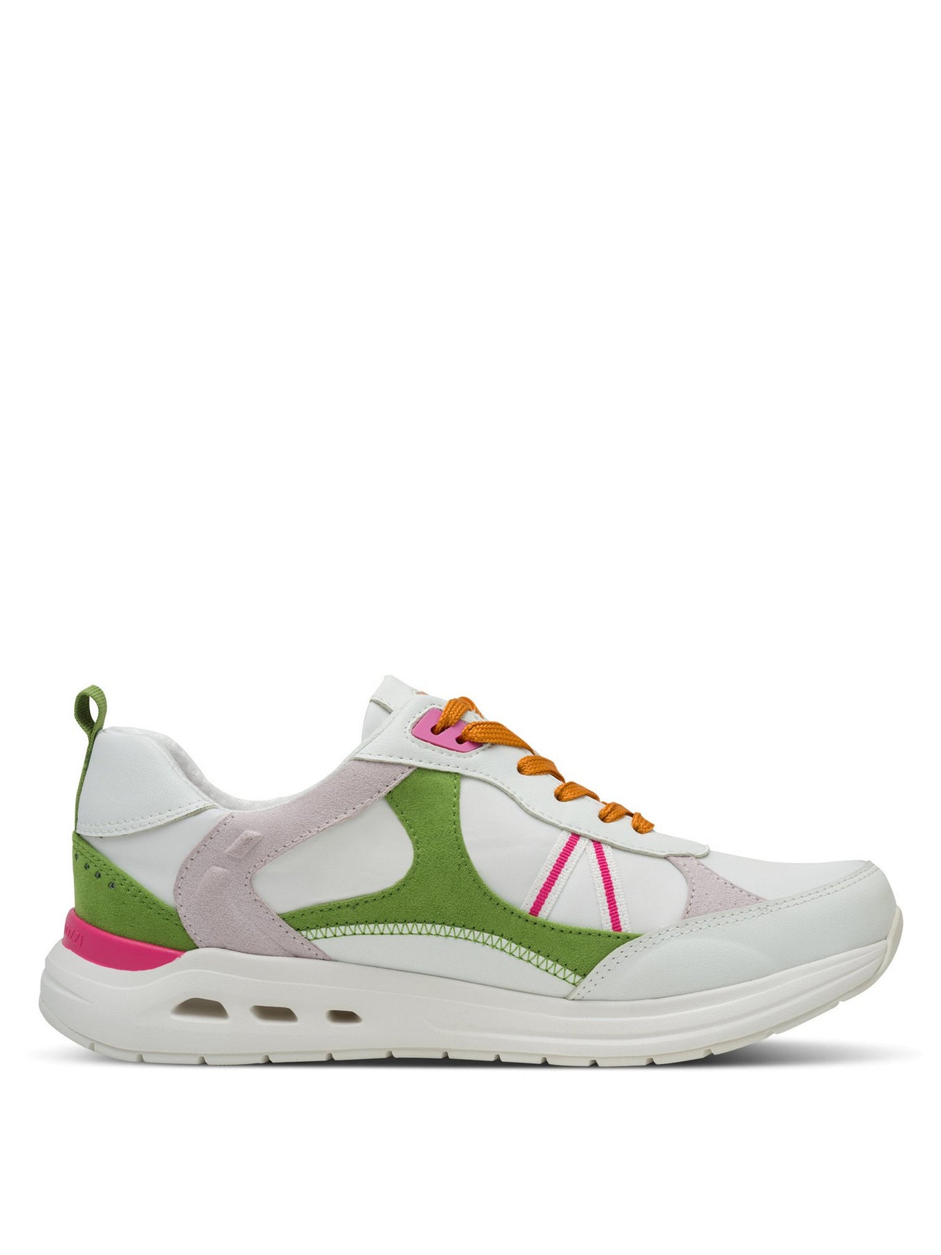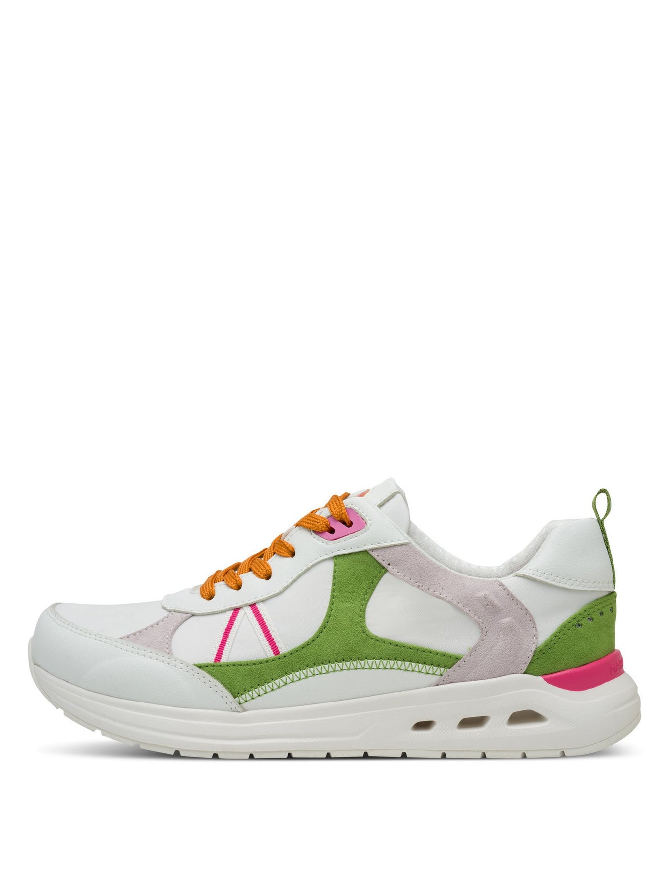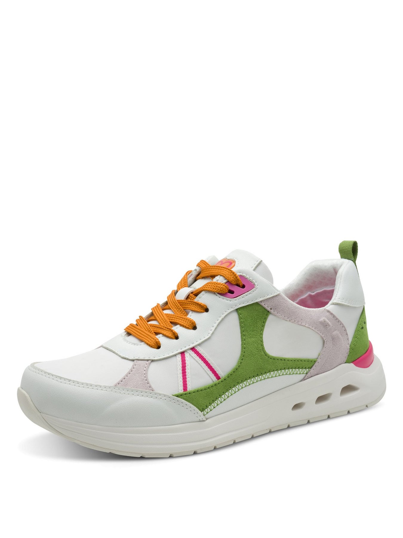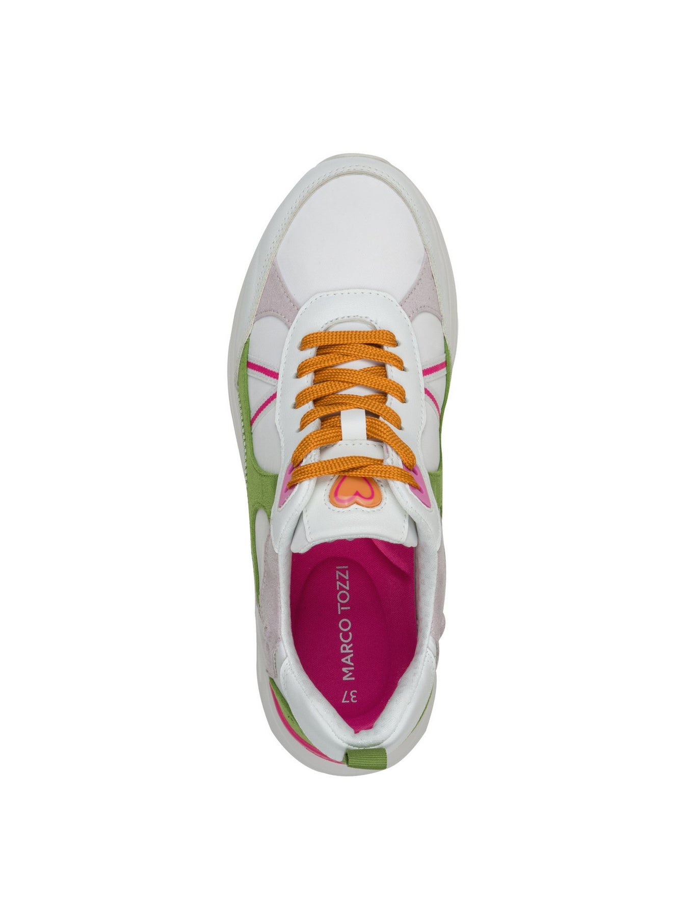 La MARCO TOZZI Sneaker Bassa Donna modello 2-23771-44 White Comb è perfetta per chi desidera una scarpa comoda ma dal carattere deciso e alla moda. Il design multicolor mescola tonalità vivaci come il verde, il rosa e l'arancio, creando un look fresco, dinamico e femminile.