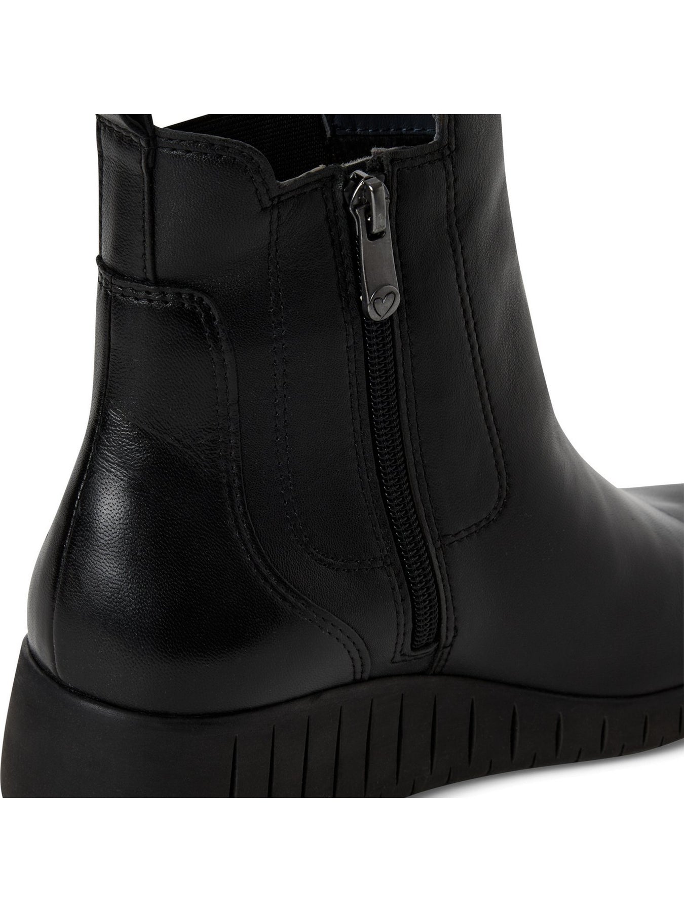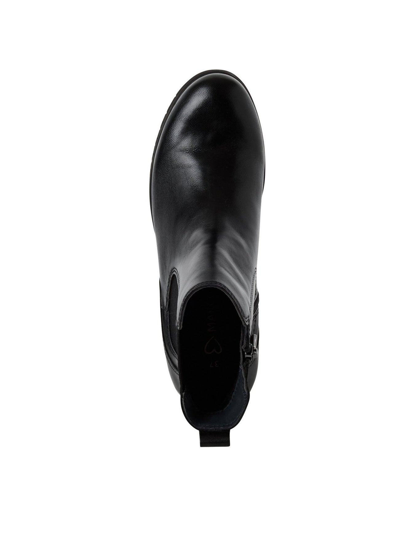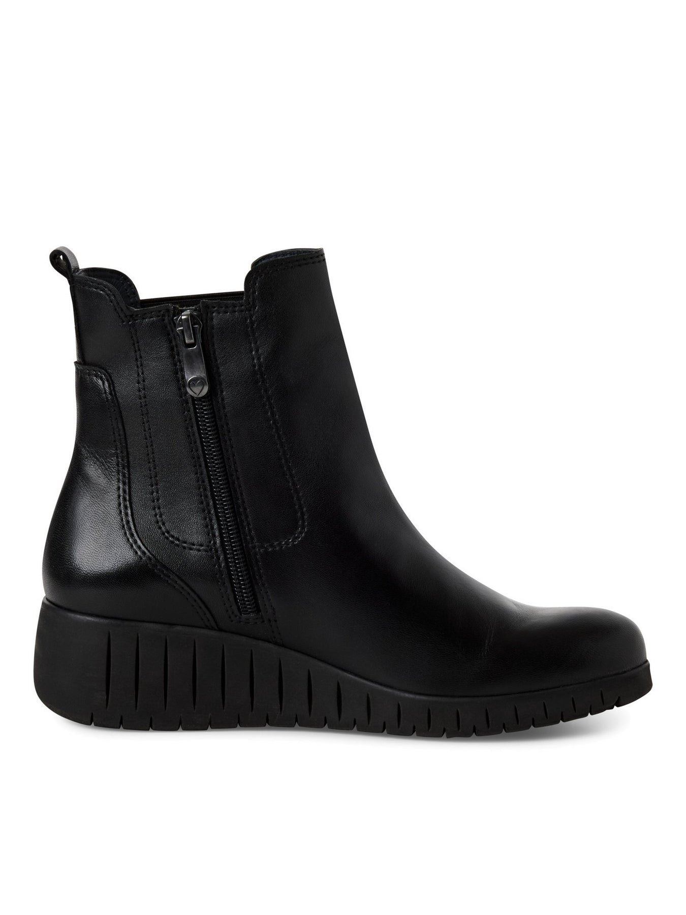 MARCO TOZZI Tronchetto con Zeppa Donna – 2-25442-43 Nero Tronchetto da donna in pelle sintetica nera con zeppa interna di 5 cm. Design minimal, comfort e praticità per l'uso quotidiano.