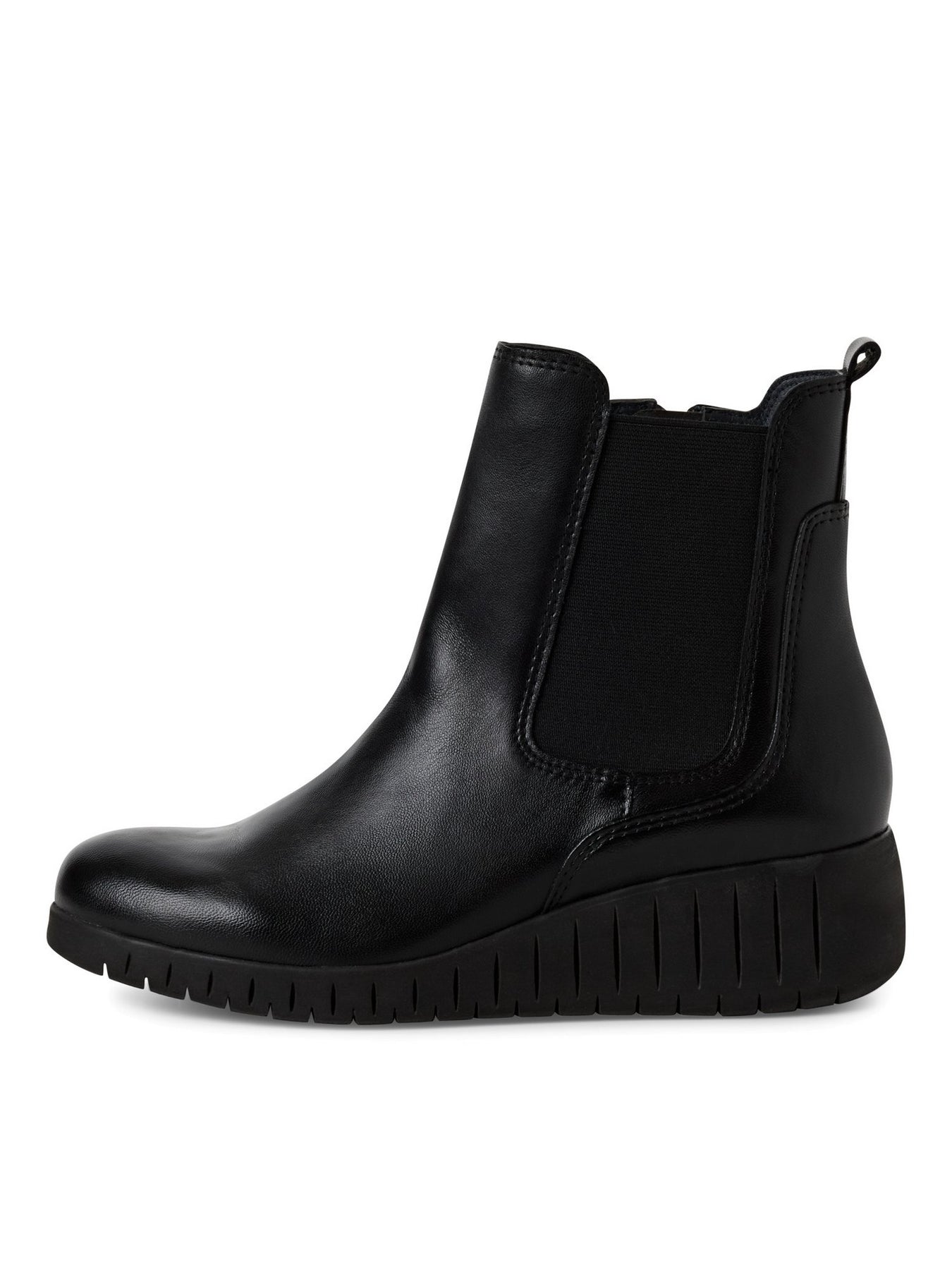 Il tronchetto MARCO TOZZI 2-25442-43 in nero è una calzatura versatile e confortevole, perfetta per la stagione autunnale e invernale. Realizzato in pelle sintetica di alta qualità, presenta inserti elastici laterali per una calzata facile e comoda.