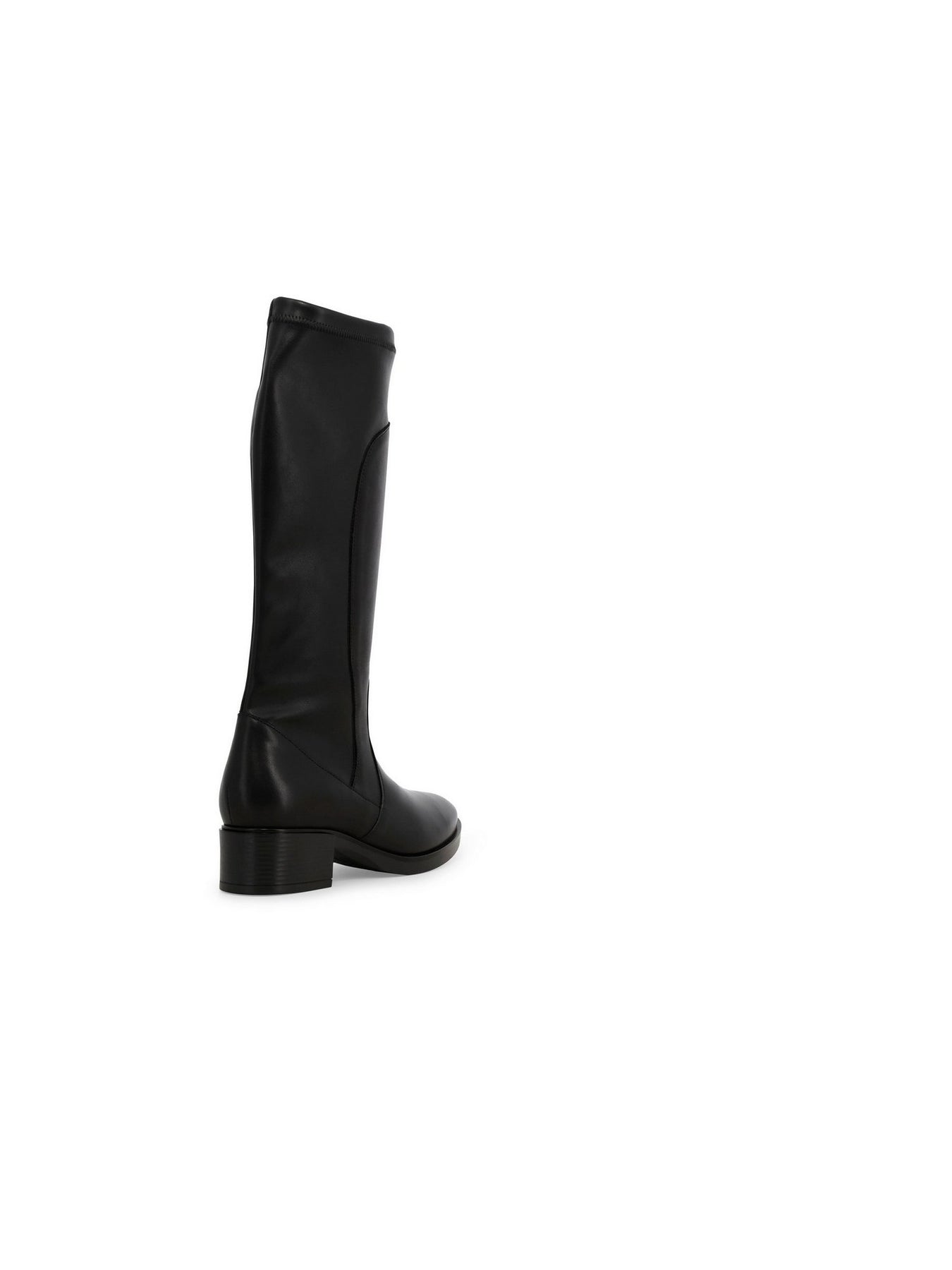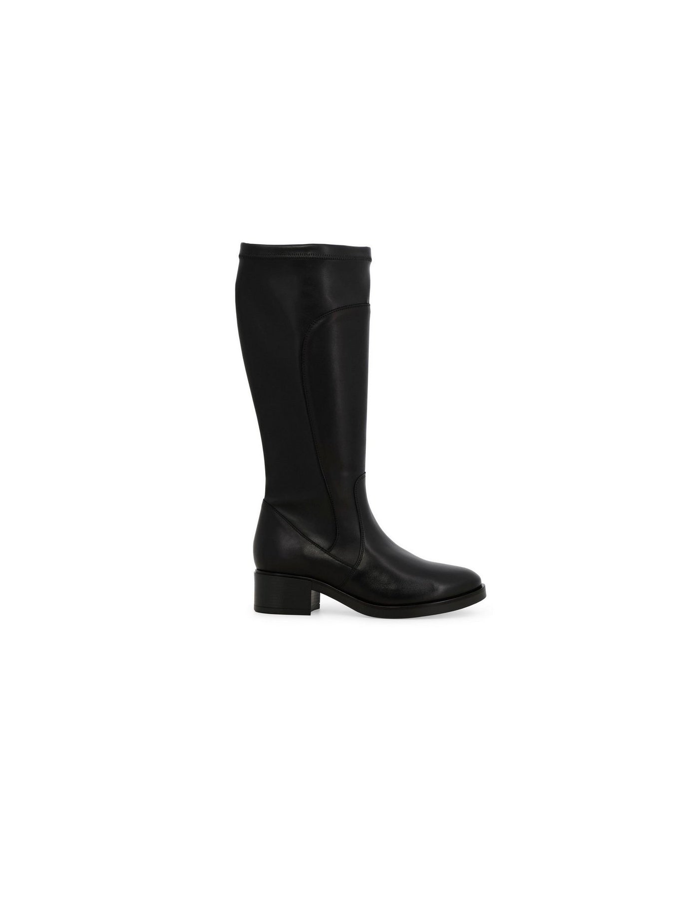Realizzato in pelle nera di alta qualità, lo stivale presenta una struttura morbida e avvolgente che garantisce comfort e vestibilità ottimale. Il tacco basso e stabile assicura una camminata sicura e confortevole, mentre la suola flessibile e antiscivolo offre aderenza su ogni superficie.