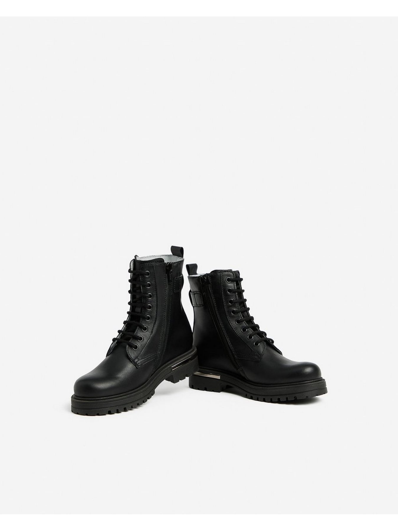 NERO GIARDINI Anfibi Bambina - I533480F Nero in pelle con lacci e zip laterale