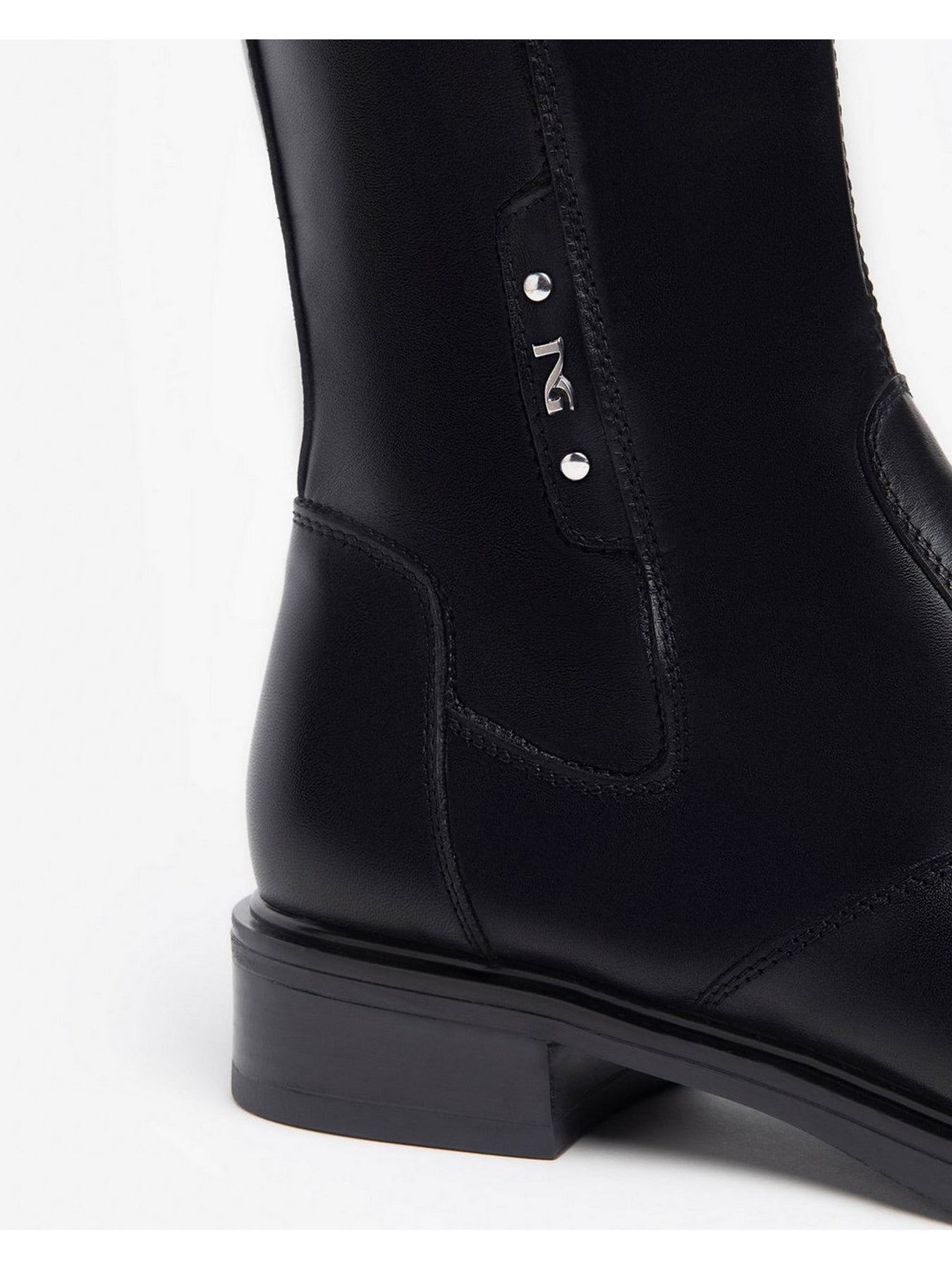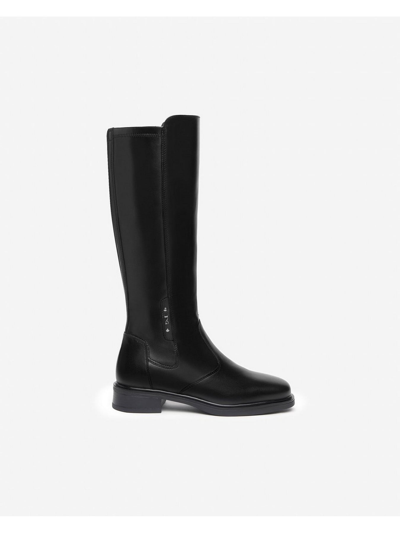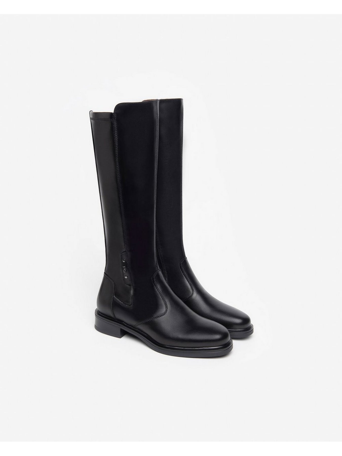NERO GIARDINI Stivale Tacco Basso Donna - I308812D Nero Stivale alto da donna in pelle e materiale tecnico nero con zip laterale e tacco basso da 3 cm, Made in Italy.