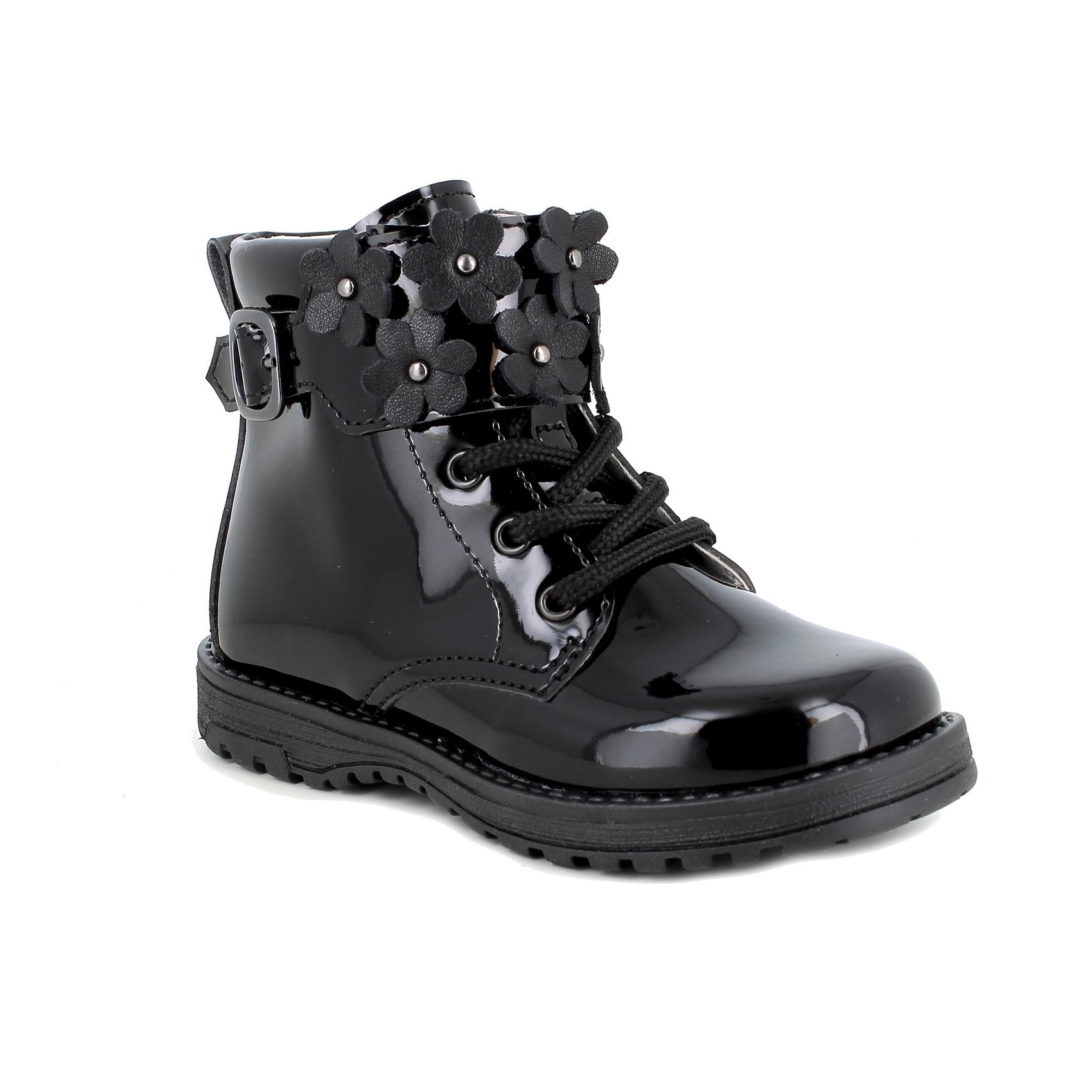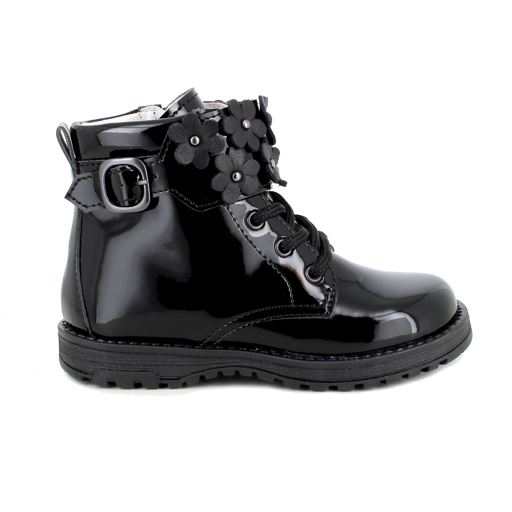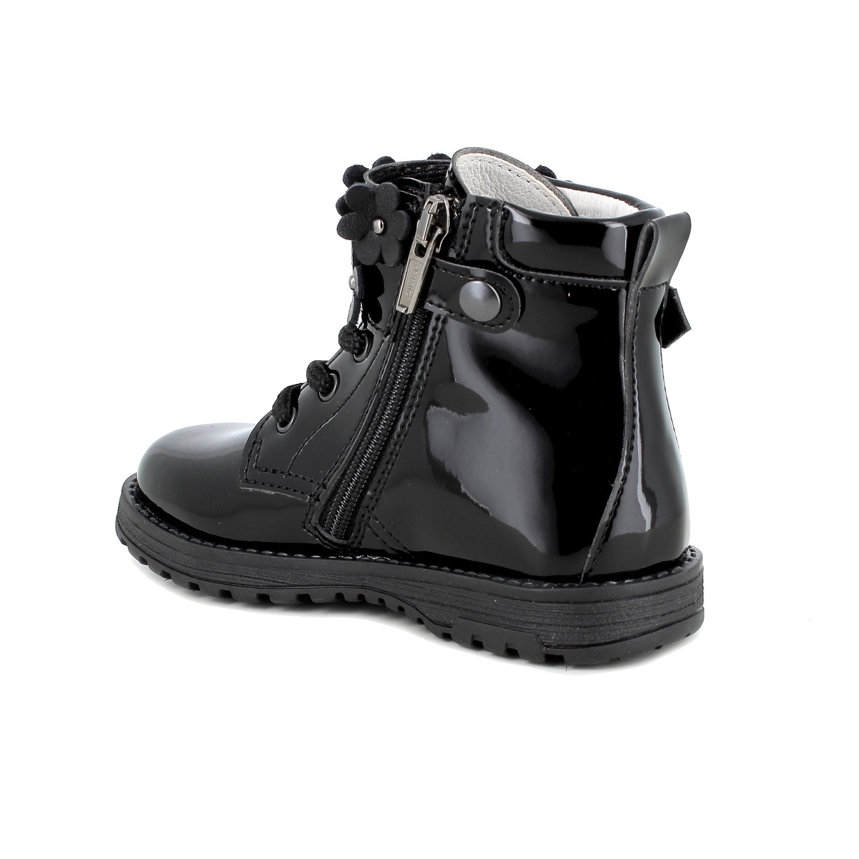 PRIMIGI Anfibi Bambina - 89136 Nero in vernice con applicazioni floreali e suola antiscivolo