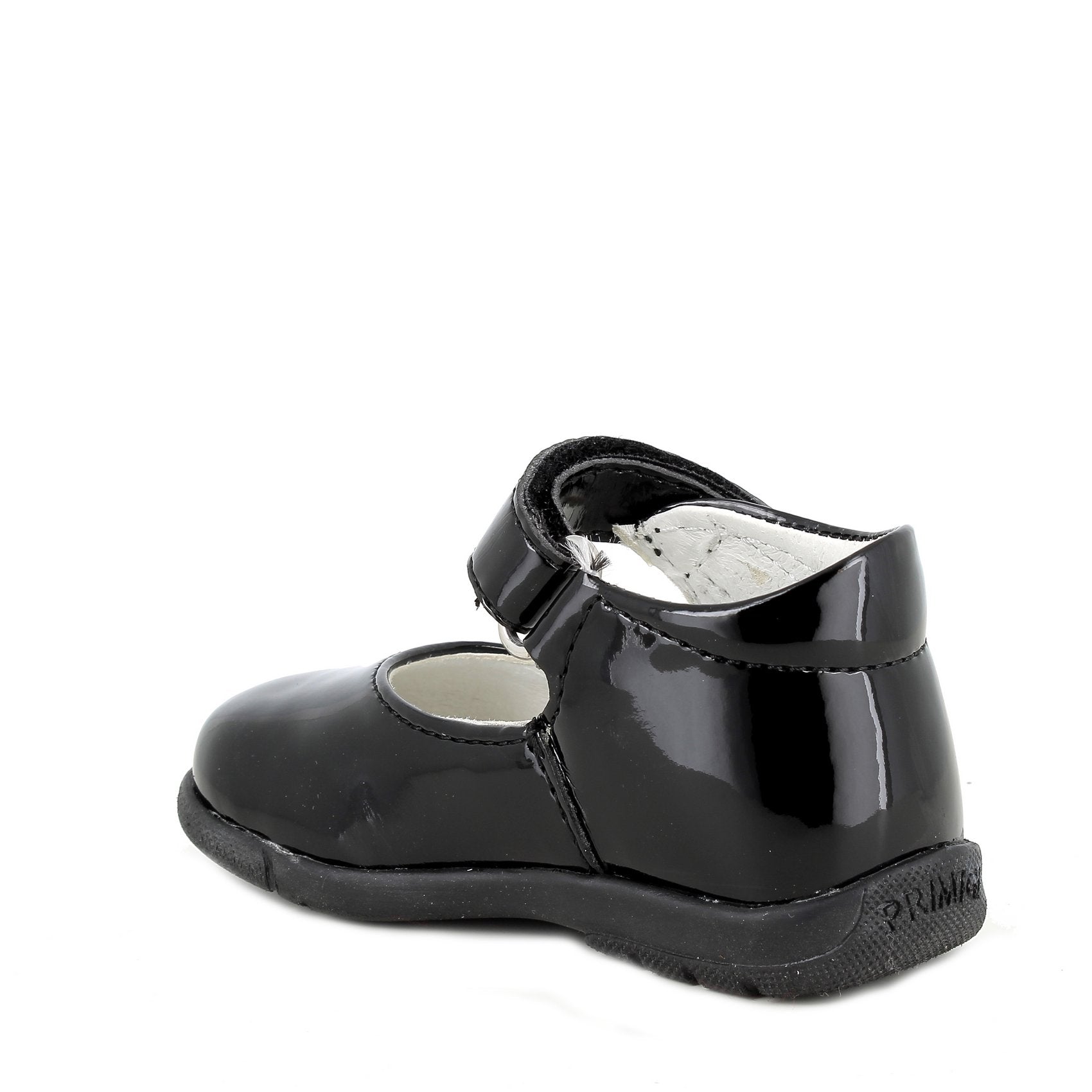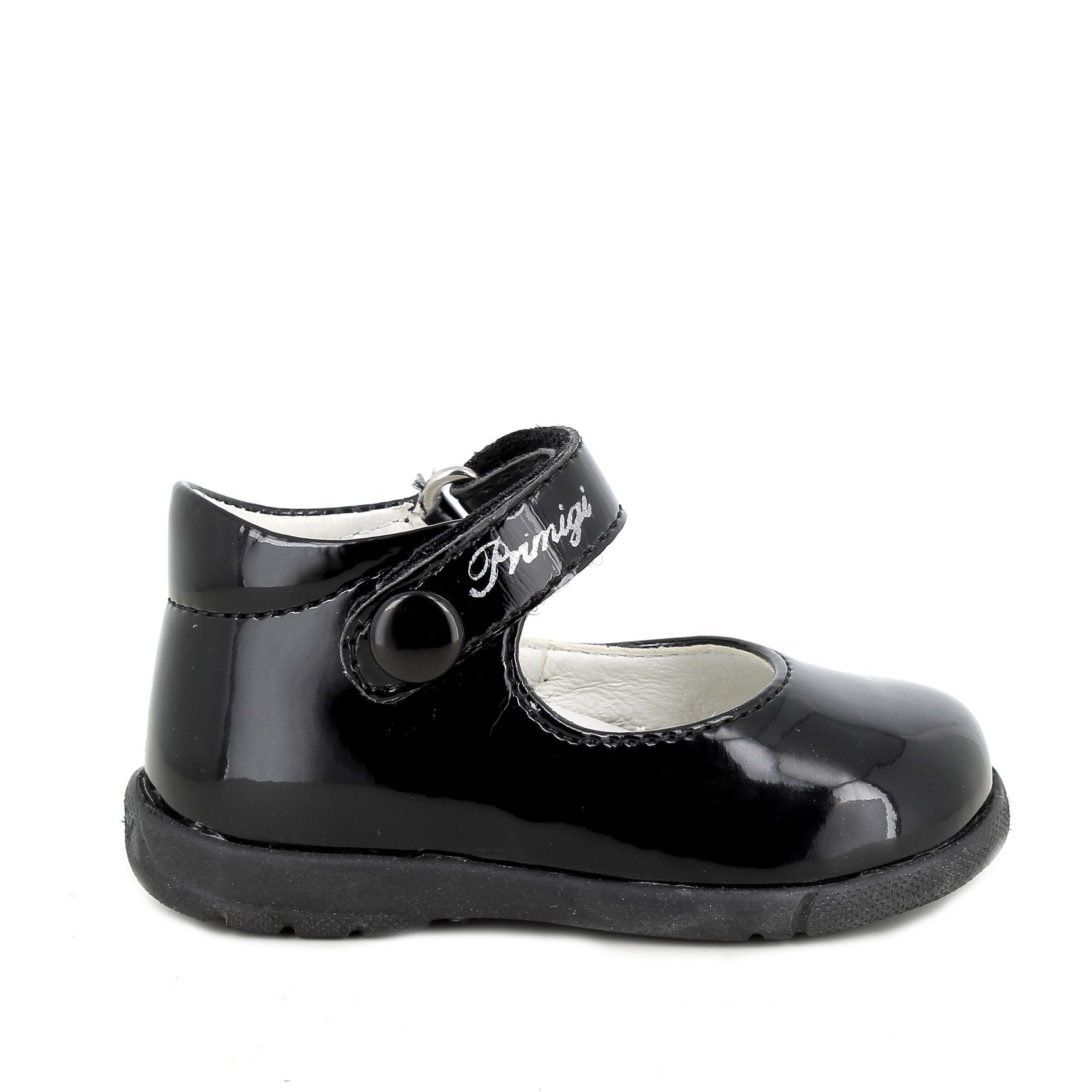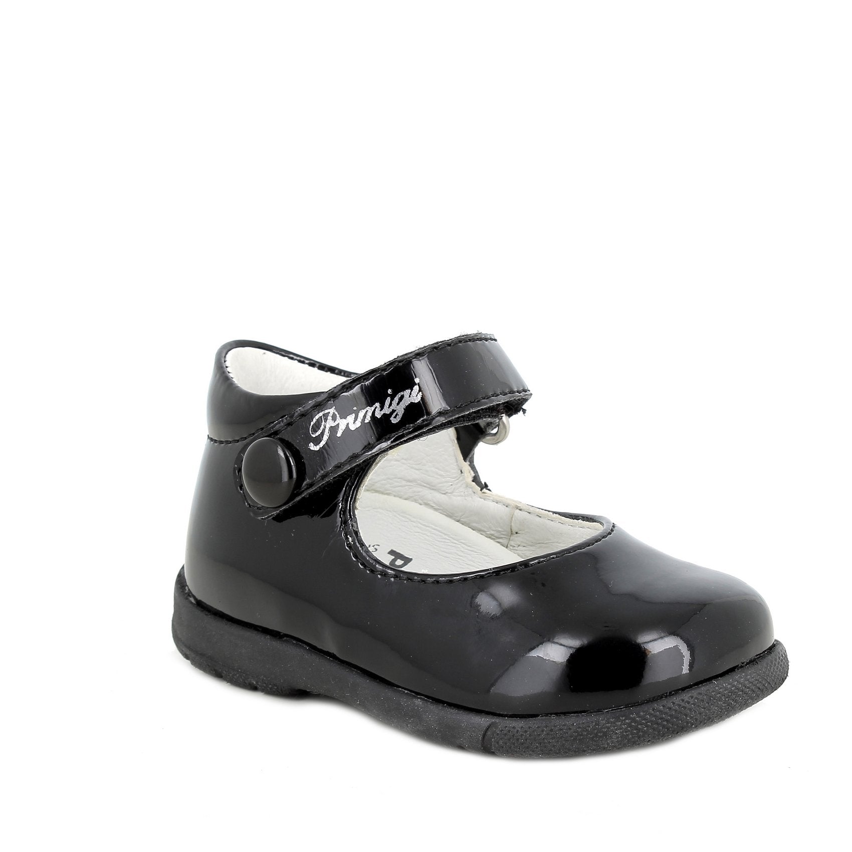 Realizzata in materiale verniciato lucido, dona un tocco raffinato e brillante al piede. La chiusura a strappo con logo PRIMIGI consente una calzata facile e sicura, adattandosi perfettamente al piedino.