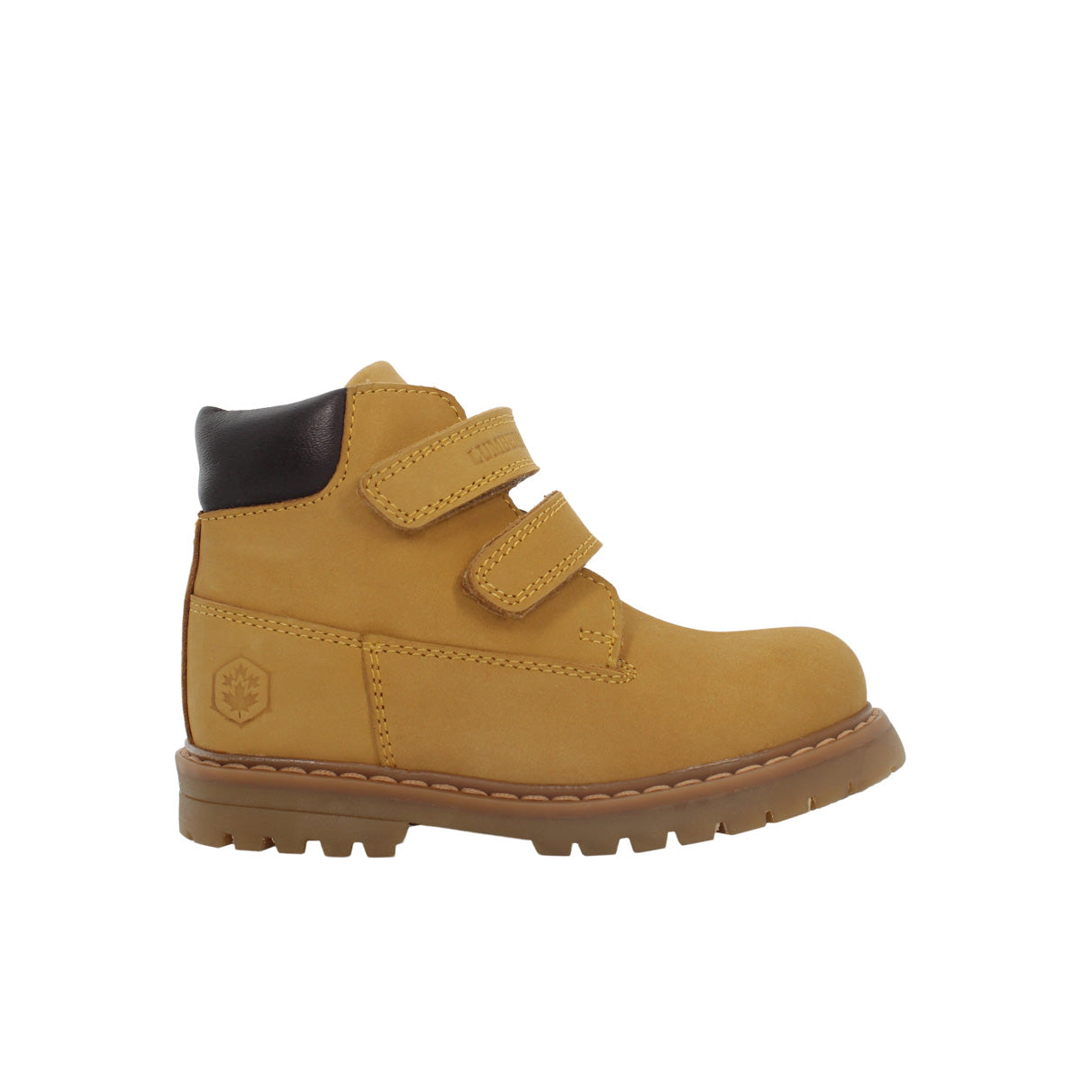 Realizzato in nabuk giallo di alta qualità, è arricchito dal collo imbottito marrone che assicura comfort alla caviglia. La chiusura con doppi strappi a velcro rende la calzata semplice e veloce, perfetta per i più piccoli.