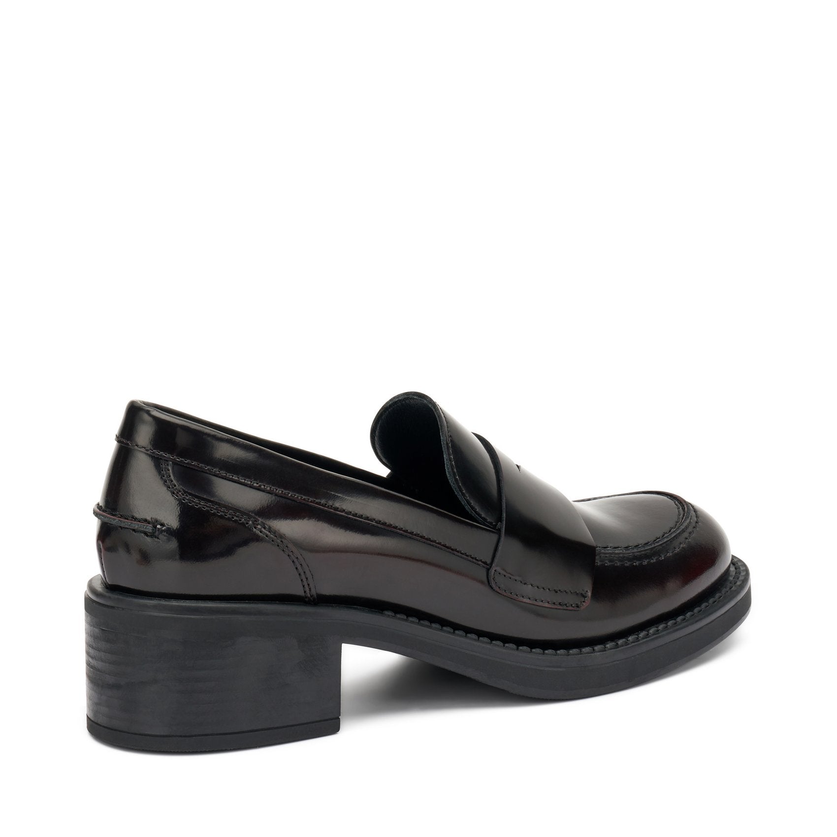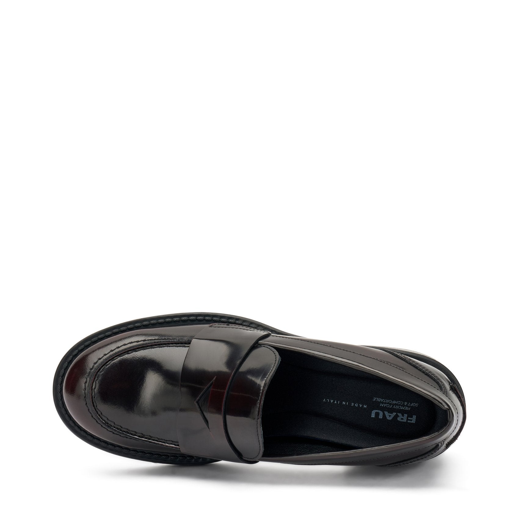 FRAU Mocassino Tacco Medio Donna - 82U1 Bordò Mocassino donna in pelle bordò lucida con tacco medio squadrato, punta arrotondata e design elegante e moderno.
