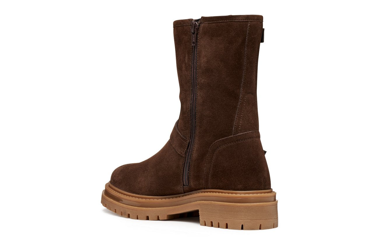 GEOX Iridea Tronchetto Tacco Basso Donna - D56HRD00022 Dk Brown Tronchetto donna in camoscio marrone con fibbie decorative e tacco basso da 4 cm.