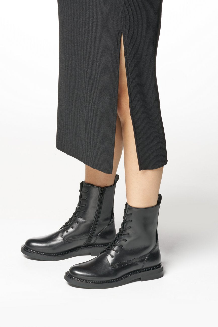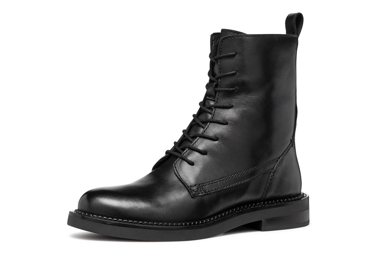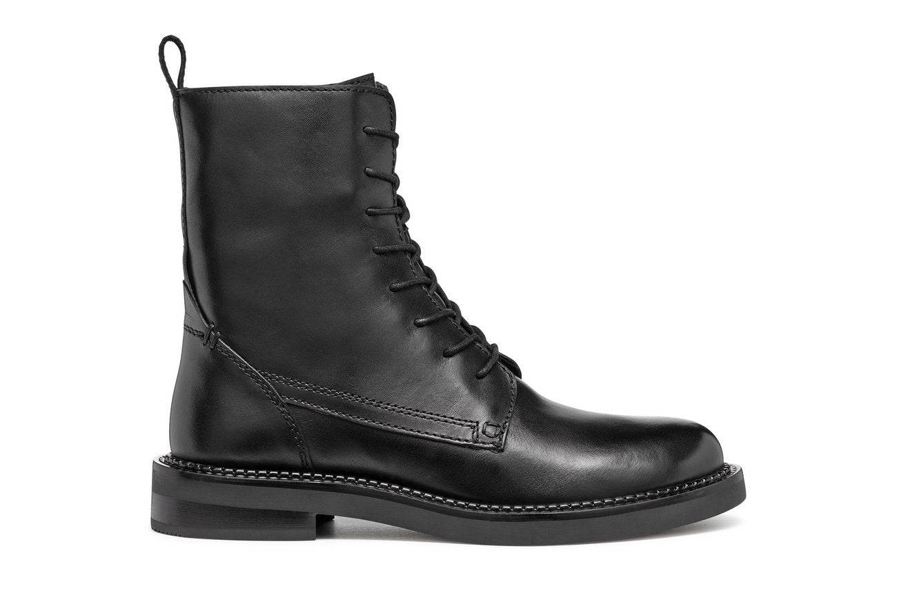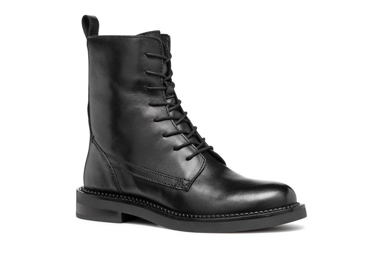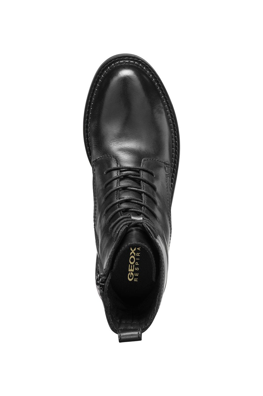 GEOX Serilda Anfibi Tacco Basso Donna - D46WYG00043 Nero Anfibi donna in pelle nera con suola flessibile e tacco basso da 3 cm.