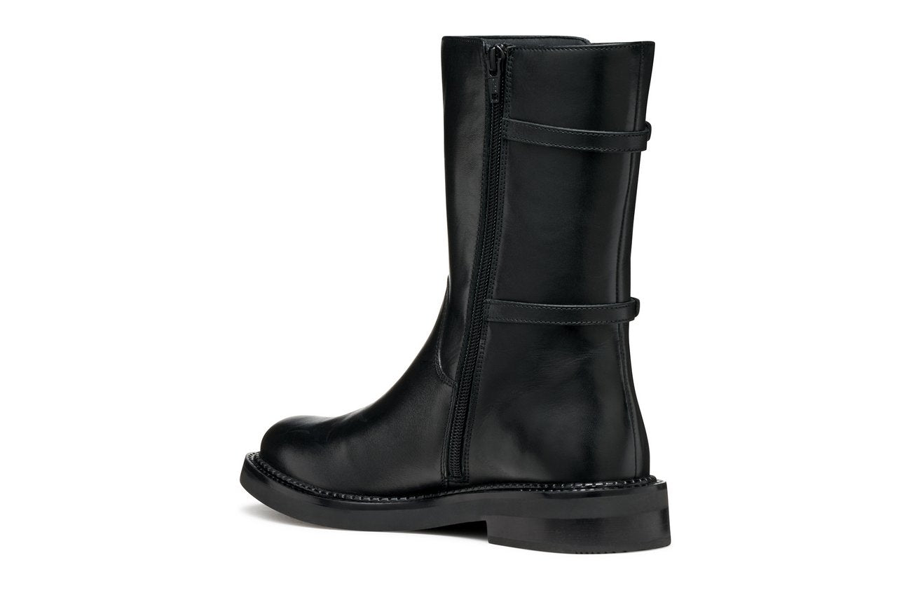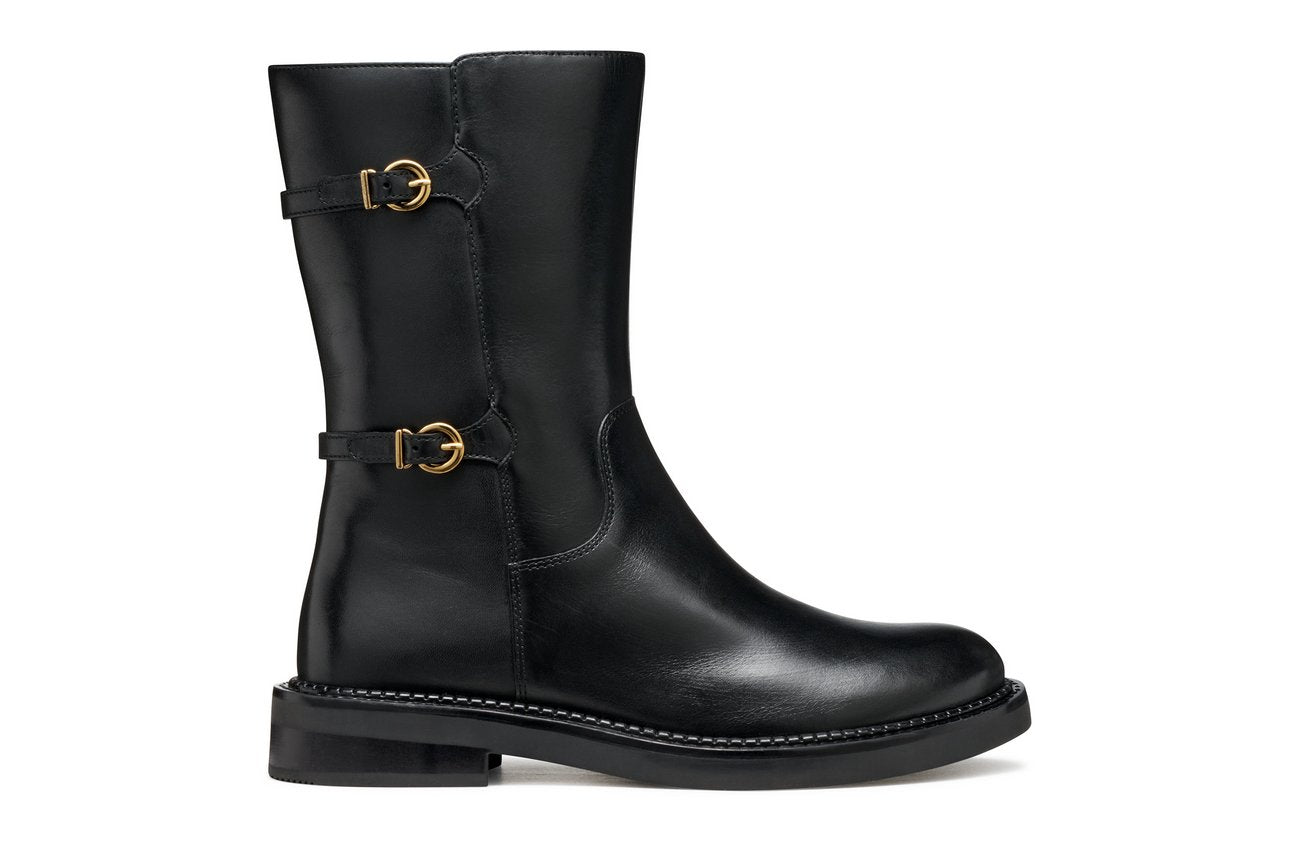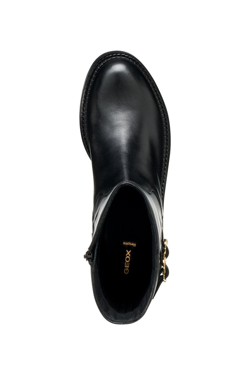 GEOX Serilda Tronchetto Tacco Basso Donna - D56WYB00043 Nero Tronchetto donna in pelle nera con doppia fibbia laterale, tacco basso e suola traspirante GEOX.