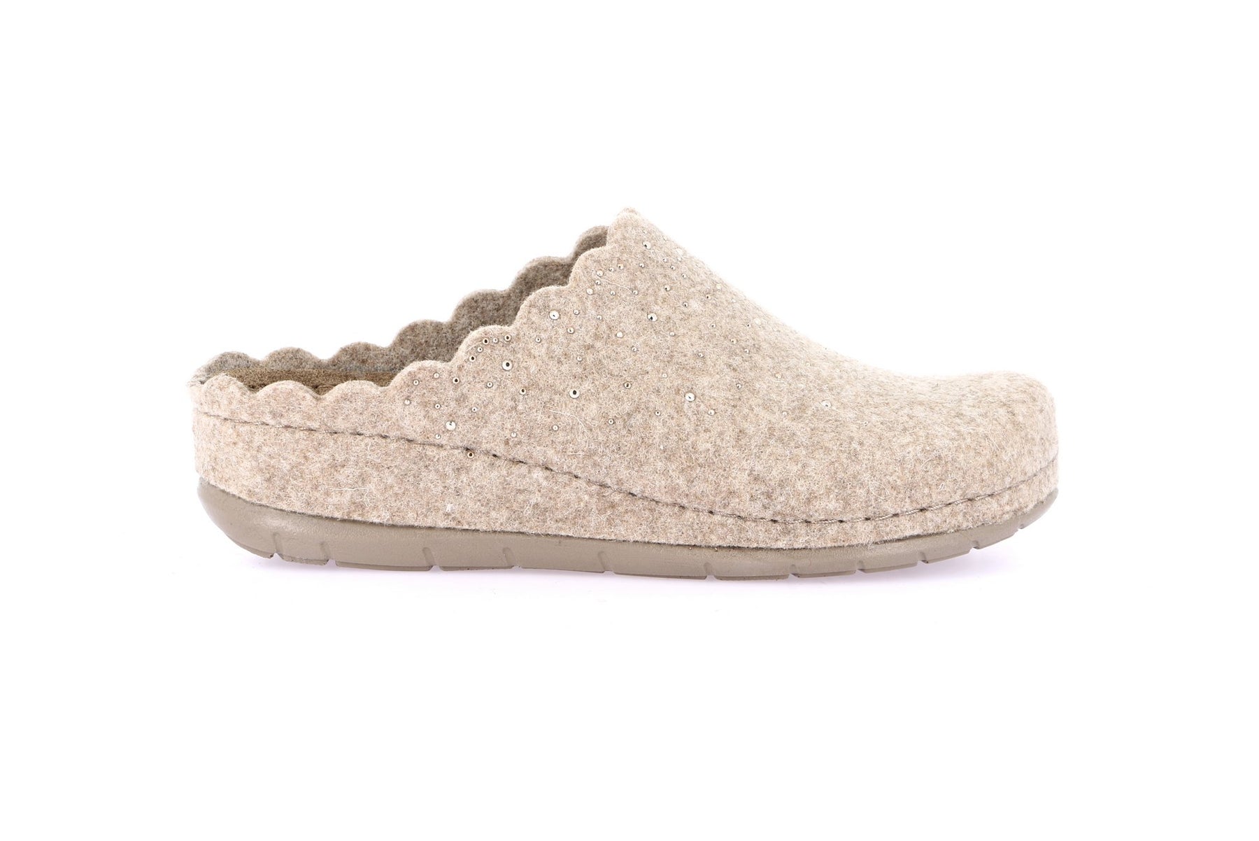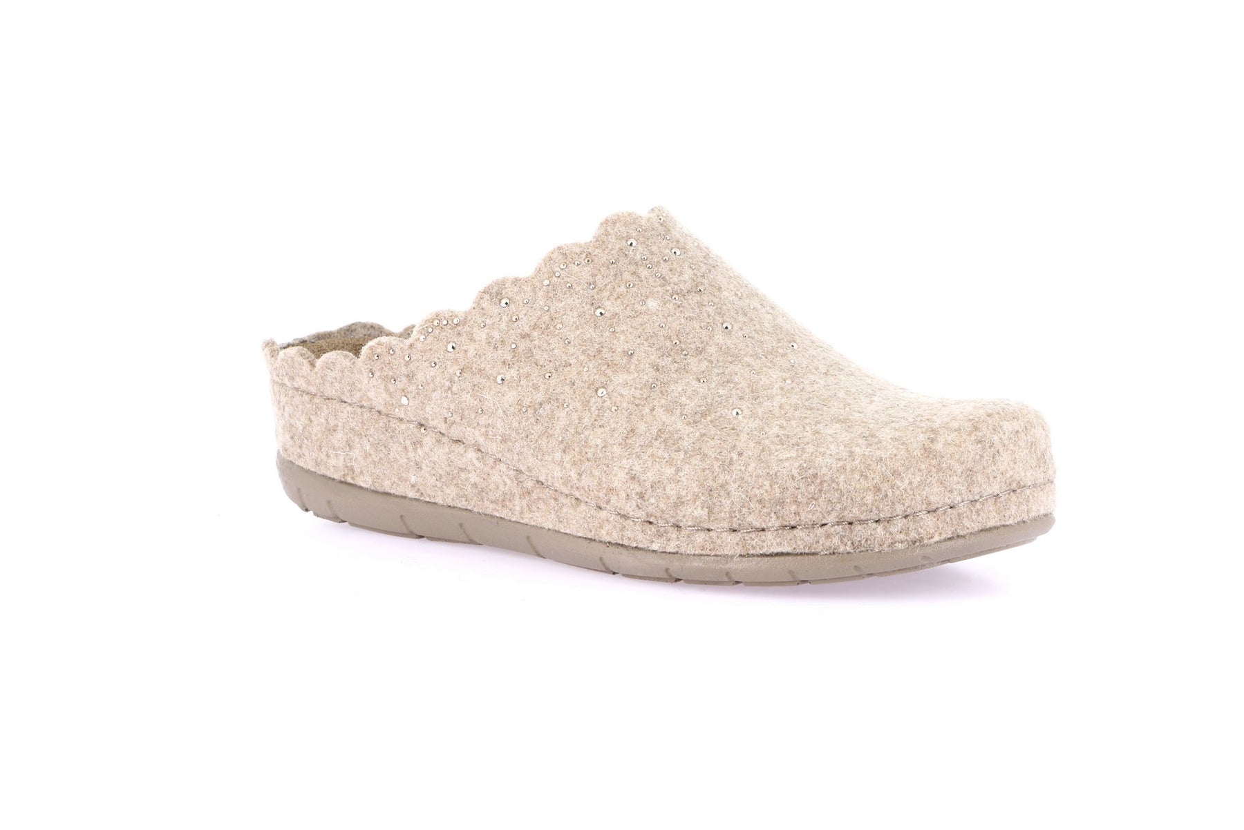 GRUNLAND Ciabatta Donna - CI1544 Beige Ciabatta in feltro beige con bordo ondulato e suola in gomma flessibile.