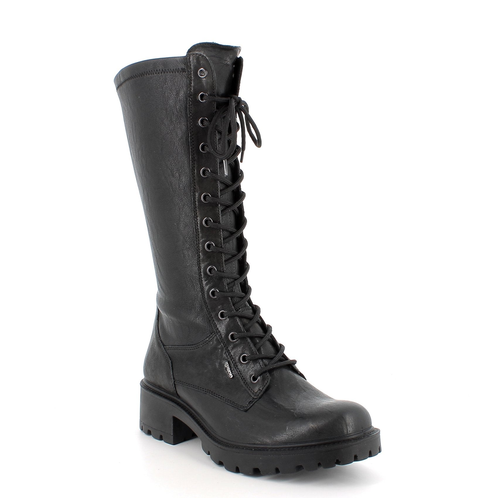 IGI&CO Anfibi Donna - 86658 Nero Anfibio da donna in pelle nera con dettagli brillanti, allacciatura frontale e suola carrarmato con tacco 6 cm.