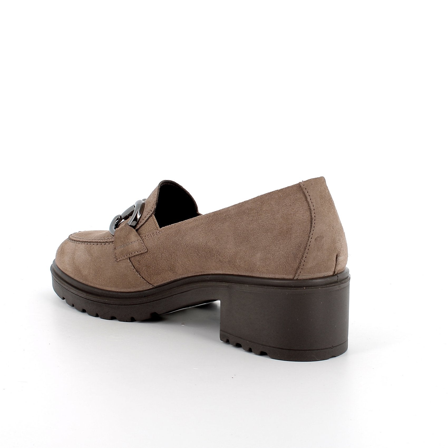 IGI&CO Mocassino Tacco Basso Donna - 86513 Fango Mocassino donna in camoscio color fango con morsetto metallico e tacco basso largo.Dettagli: