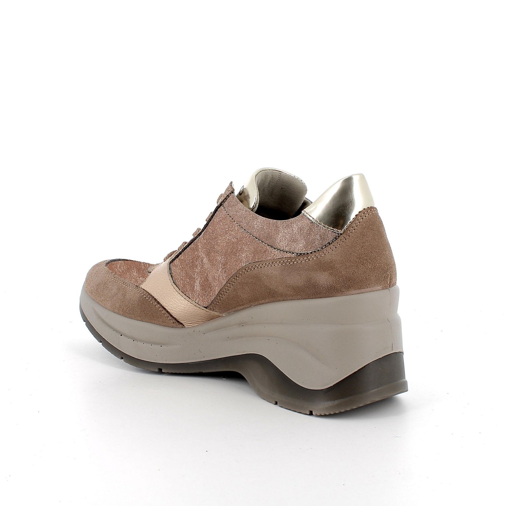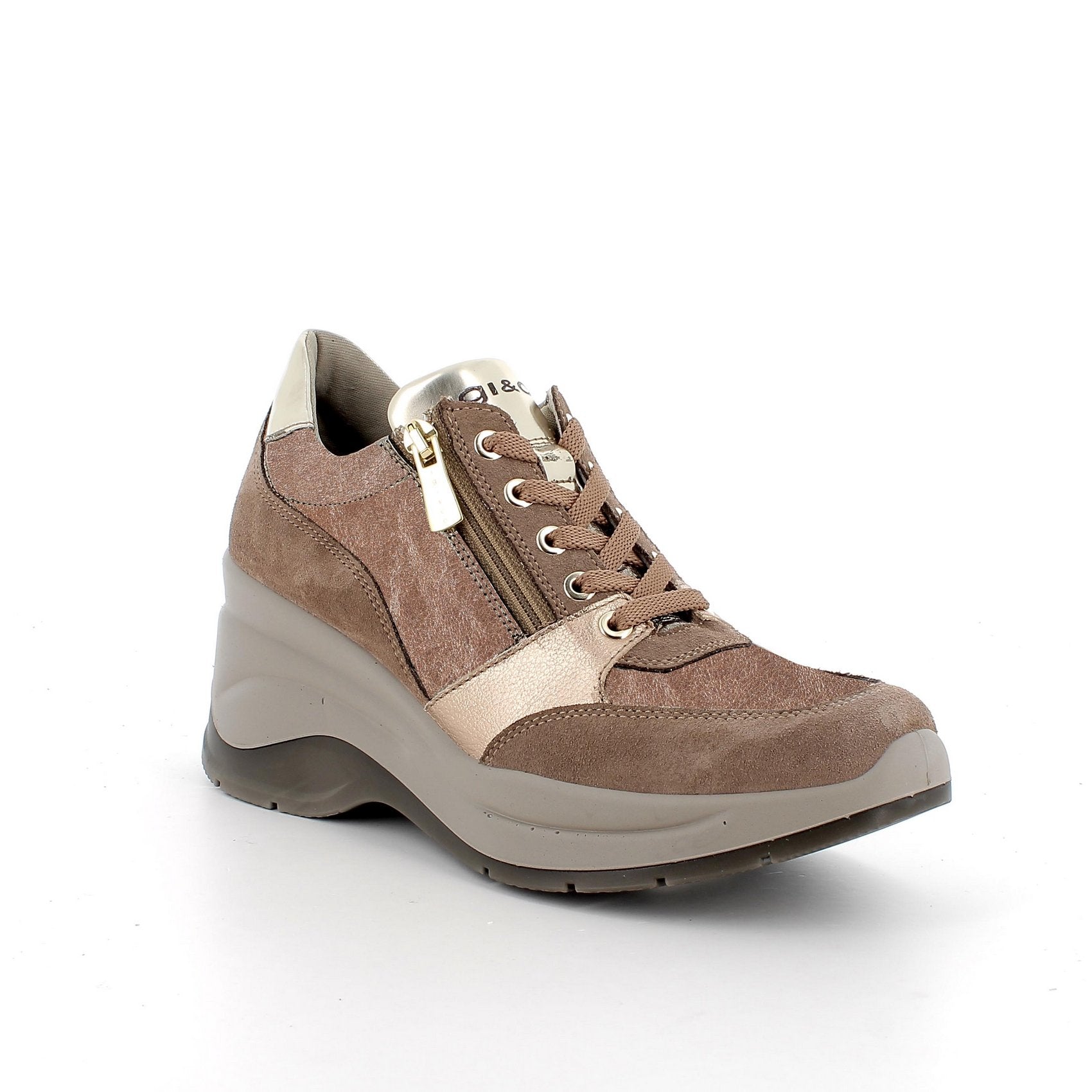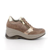 IGI&CO Sneaker Con Zeppa Donna - 86558 Fango Sneaker da donna in pelle e camoscio color fango con inserti laminati, zip laterale e zeppa comfort.
