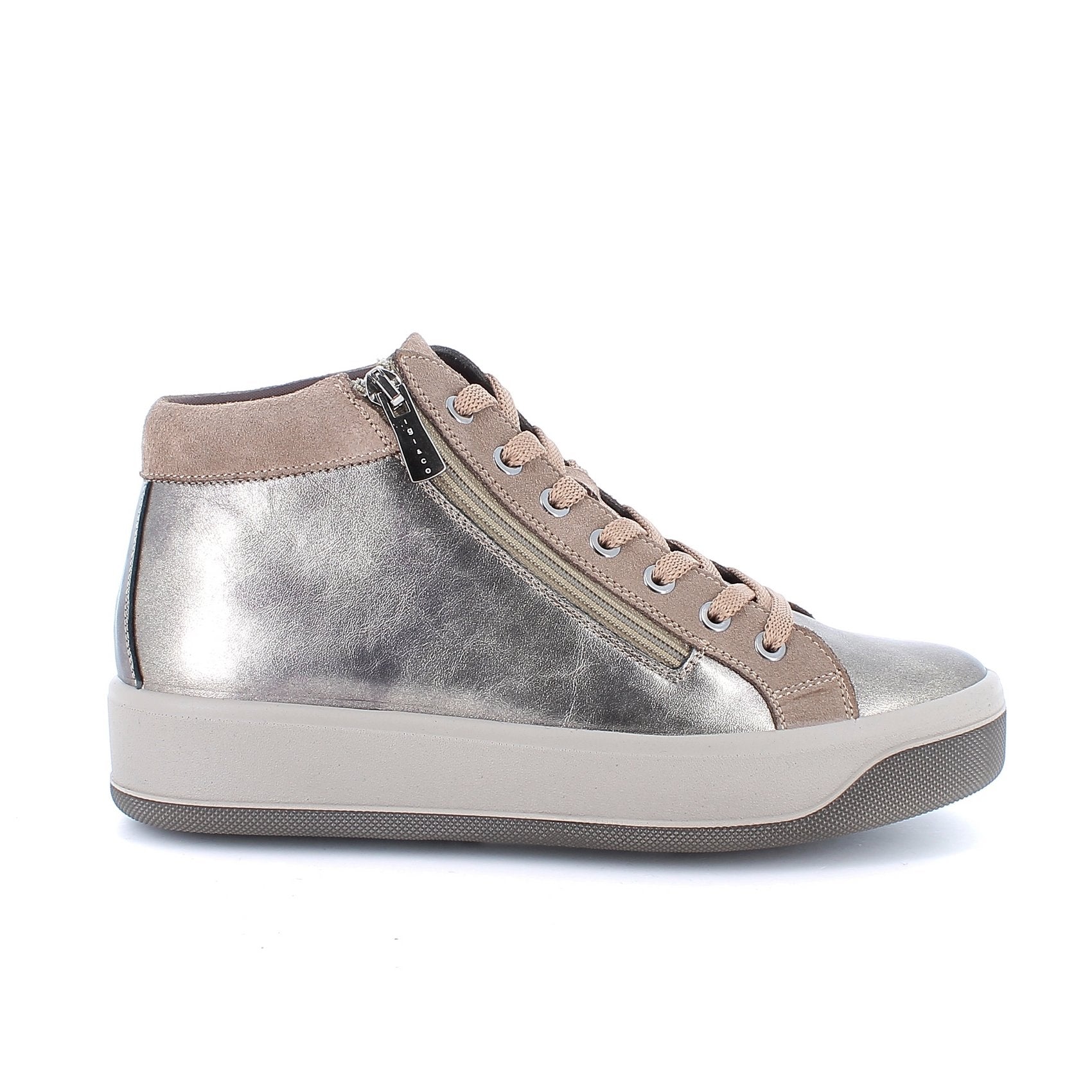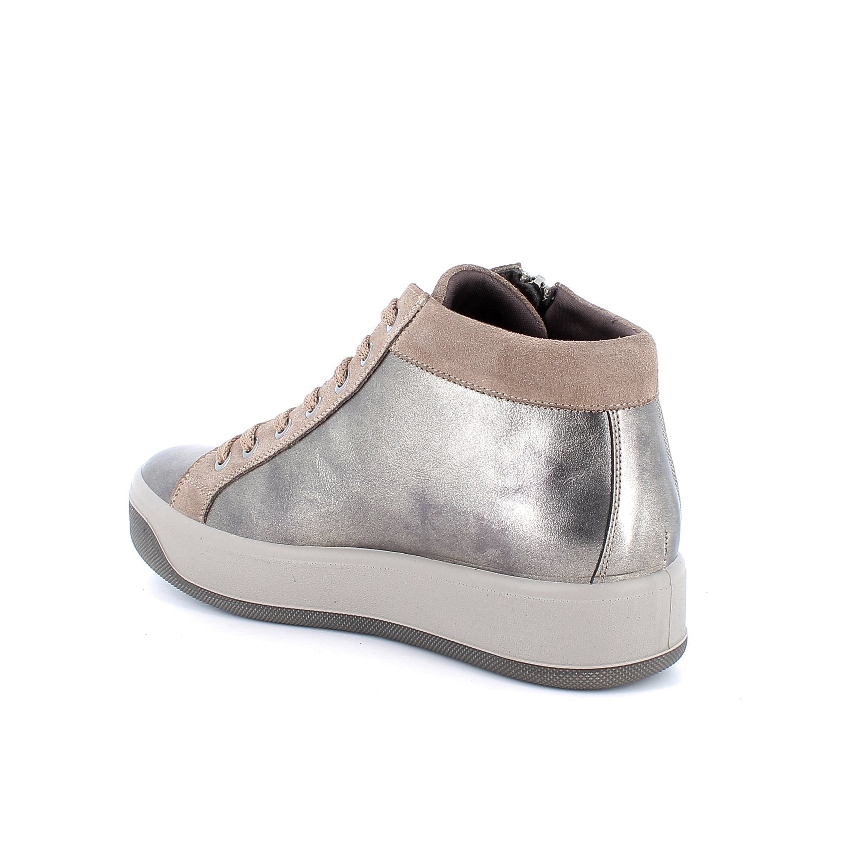 Il modello IGI&CO 86700 Taupe è una sneaker con zeppa femminile dal design moderno e versatile, ideale per l'uso quotidiano. Realizzata in morbida pelle e camoscio color taupe, è impreziosita da inserti laminati che donano un look luminoso e contemporaneo.