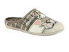 Realizzata in tessuto morbido color sabbia con fantasia a quadri sul lato, presenta un'applicazione decorativa a tema gattino con fiocco e cuoricini, per un tocco allegro e femminile. La calzata a sabot permette di indossarla facilmente, garantendo praticità e comodità.
