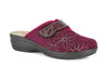 Realizzata in morbido tessuto color prugna, è impreziosita da un ricamo floreale tono su tono e da una chiusura a strappo che permette di regolare la calzata in base alle esigenze. La struttura a sabot rende l'indosso semplice e veloce, assicurando praticità quotidiana.