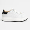 Realizzata in pelle nera di alta qualità, è arricchita dal dettaglio bianco sul tallone che crea un elegante contrasto. La suola platform bianca dona slancio e modernità, assicurando al tempo stesso stabilità e comodità.