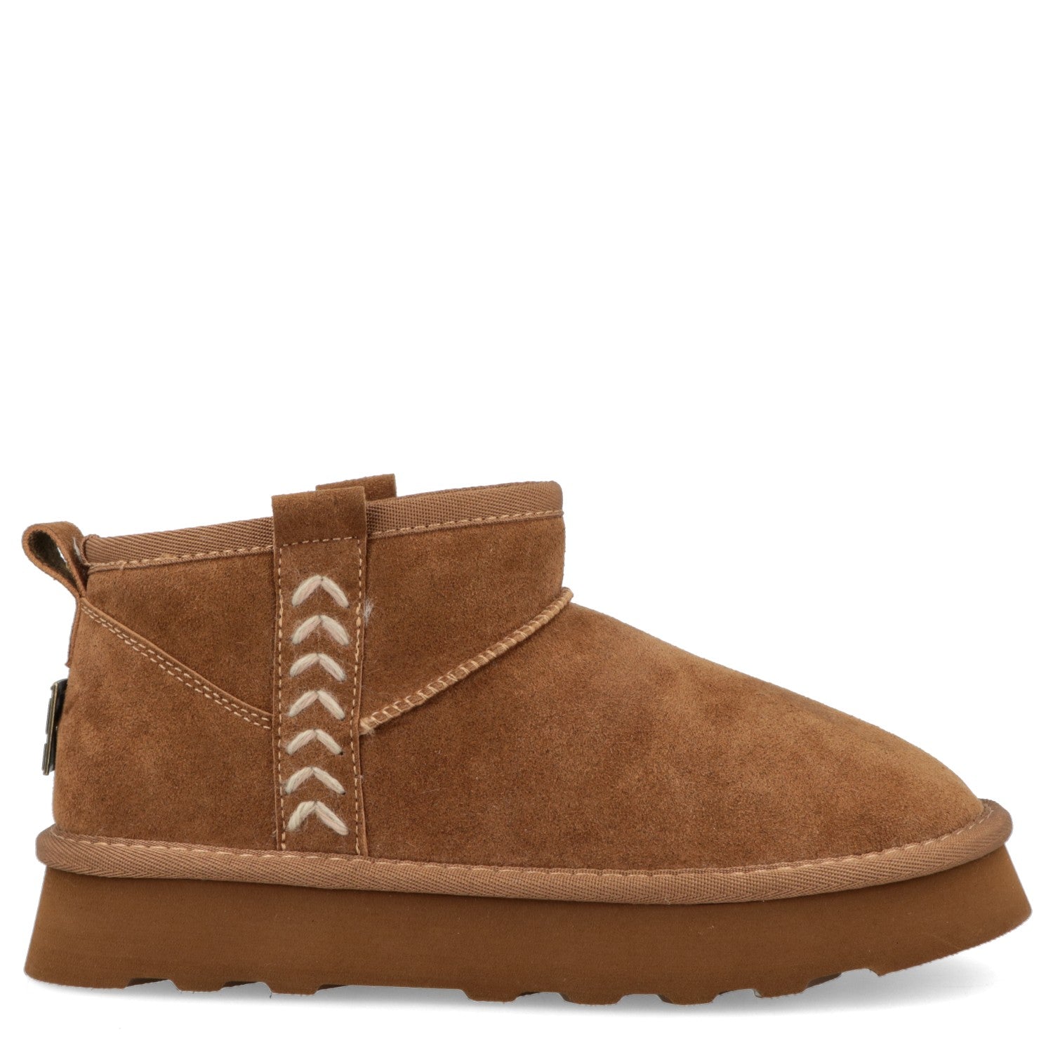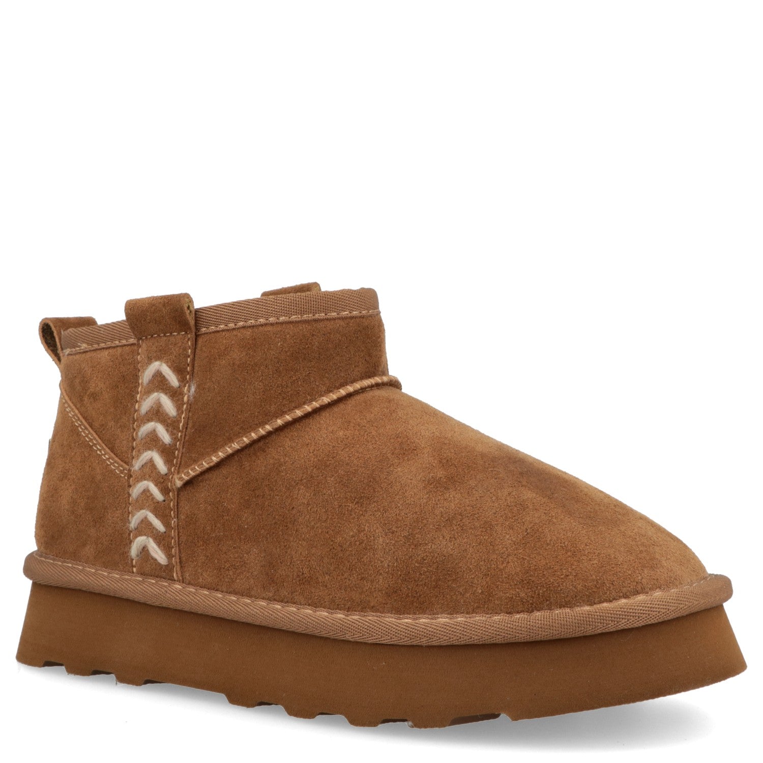 Realizzato in pelle scamosciata di alta qualità, avvolge il piede con morbidezza e calore. Le cuciture decorative a contrasto donano un carattere distintivo, mentre il design con linguetta posteriore facilita la calzata.