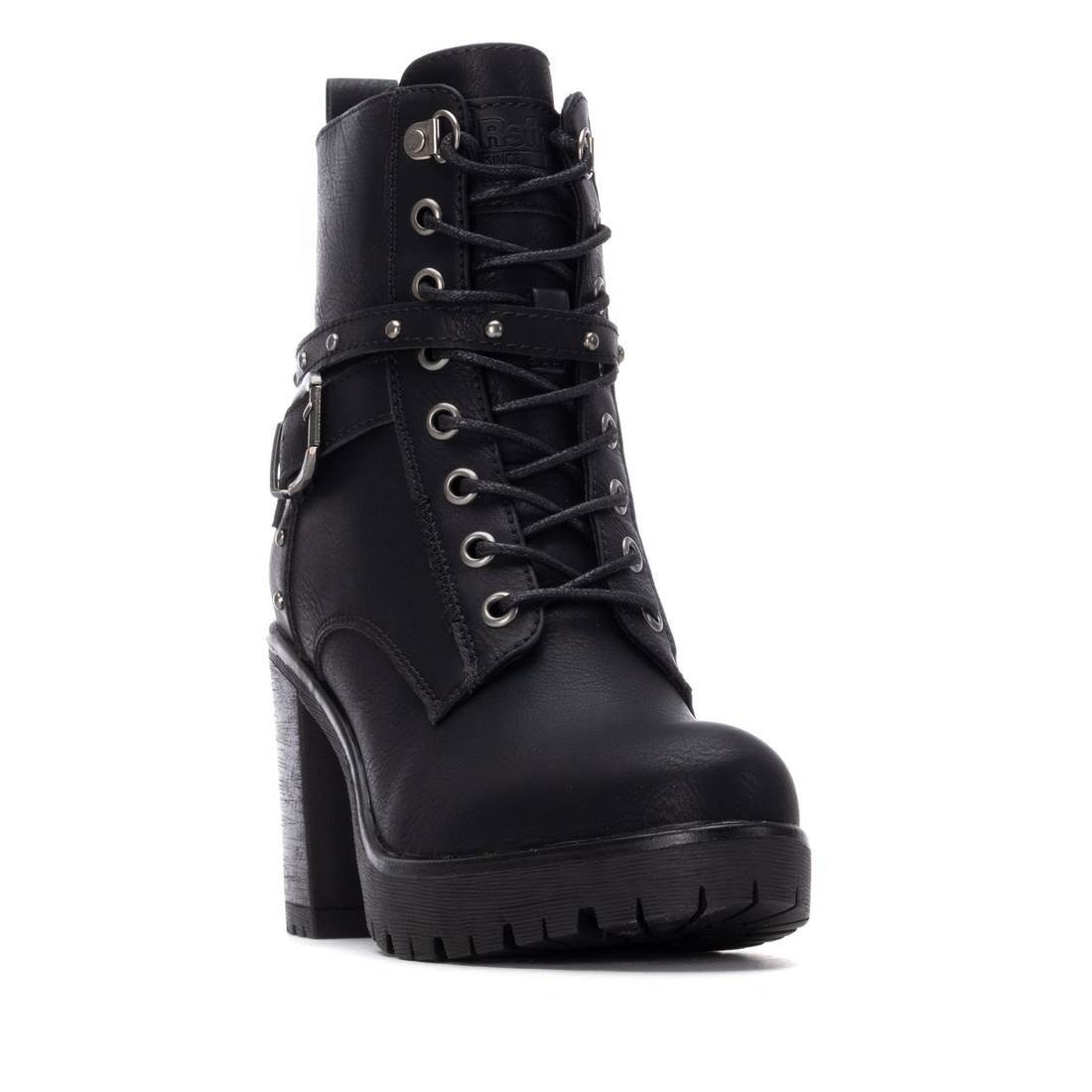 REFRESH Anfibi Tacco Medio Donna - 172916 Nero Anfibi donna in ecopelle nera con fibbia, borchie e tacco medio 8 cm, grintosi e fashion.