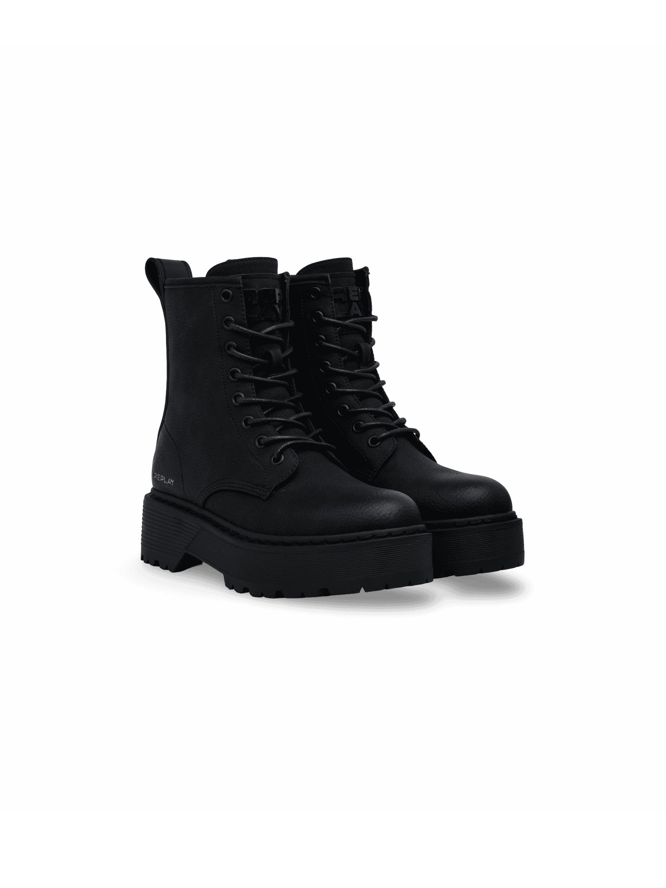 Realizzati in materiale sintetico di alta qualità con finitura nera, questi anfibi presentano una tomaia pulita e minimalista, impreziosita dal logo Replay applicato lateralmente, che aggiunge un tocco di stile discreto e riconoscibile.