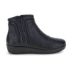 Realizzato in morbida pelle nera, presenta linee semplici e pulite che lo rendono facilmente abbinabile a diversi outfit. La zip laterale consente una calzata rapida e funzionale, mentre la zeppa da 4 cm offre altezza e stabilità senza rinunciare alla comodità.