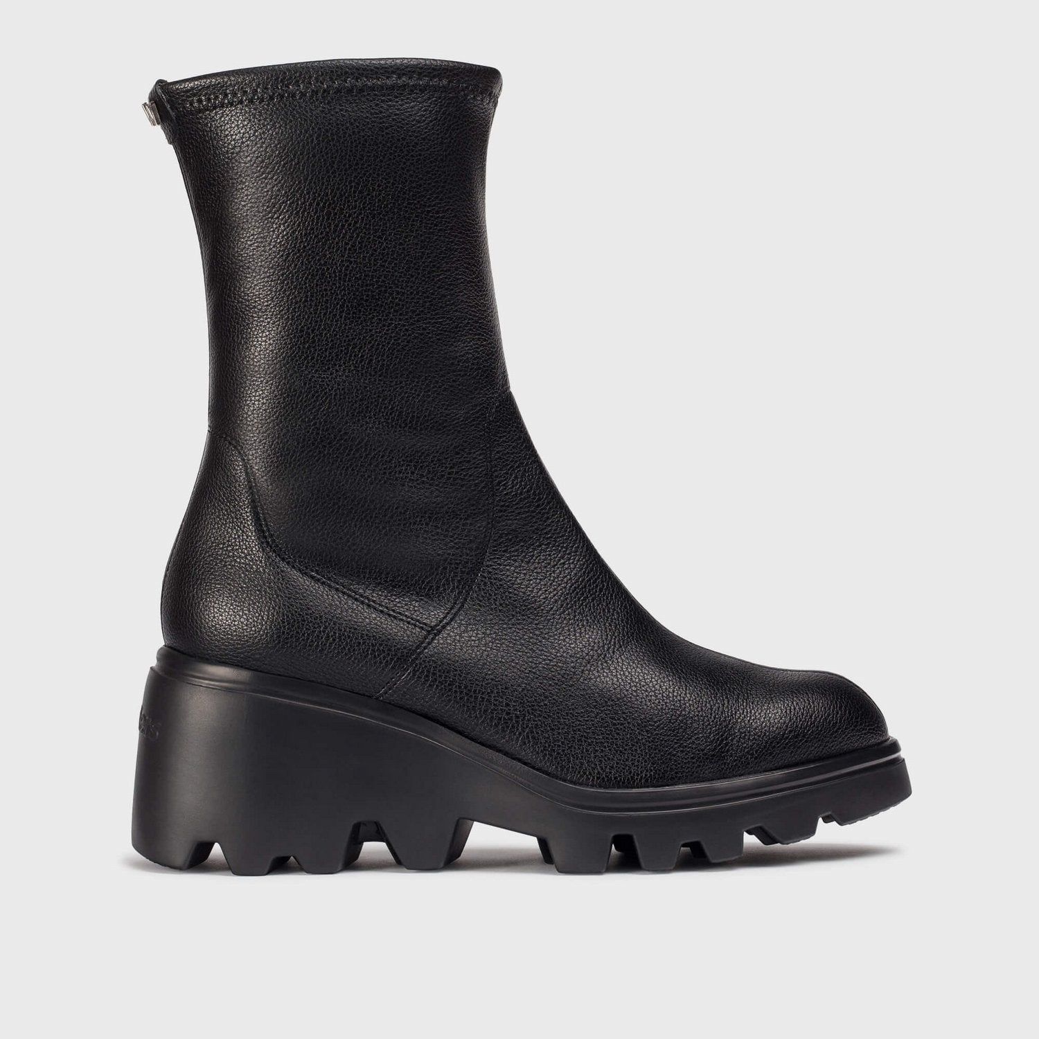 WONDERS Tronchetto Con Zeppa Donna - G-7017 Nero Tronchetto donna in pelle nera con zeppa platform da 6 cm e suola carrarmato dentellata.