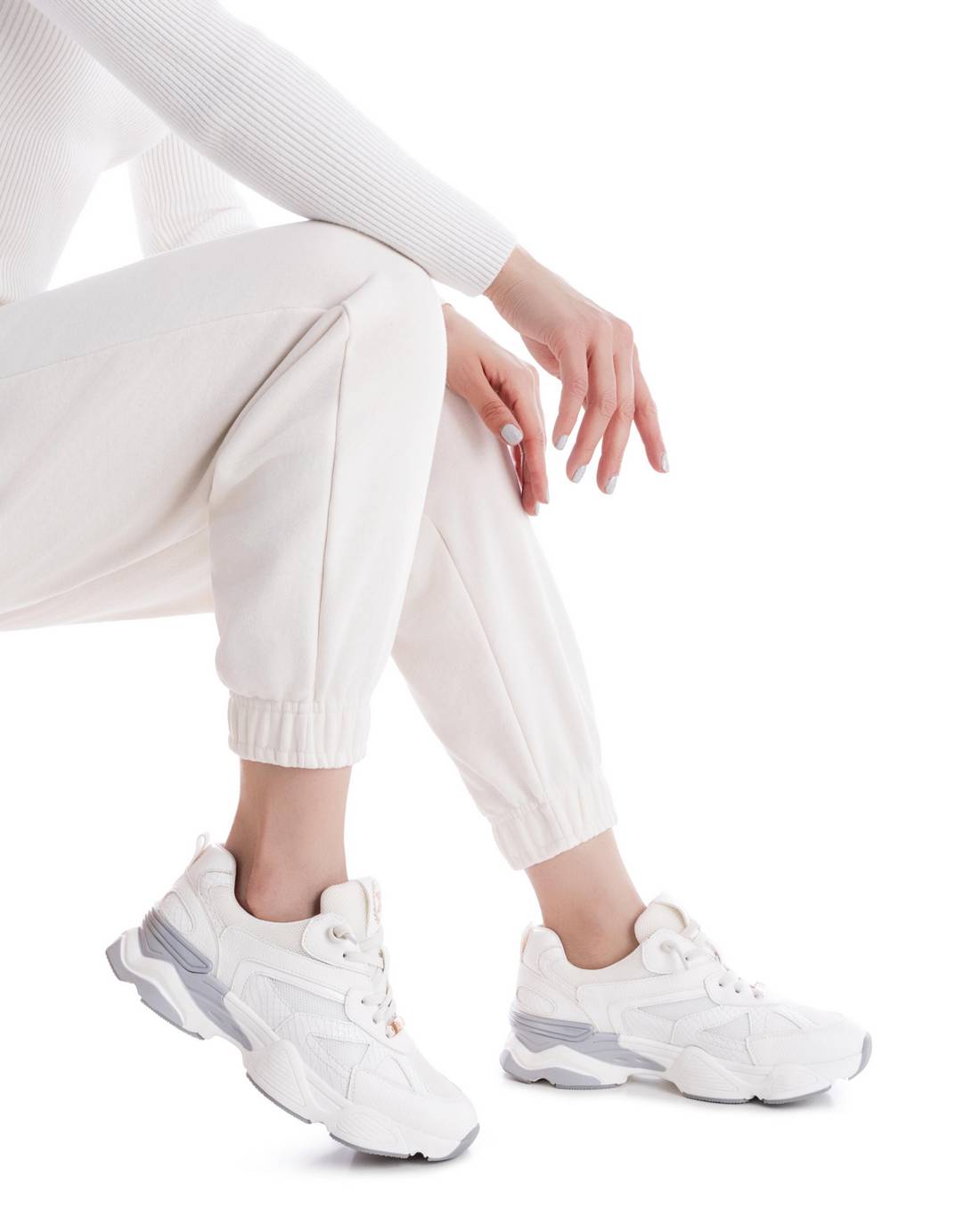 XTI Sneaker Bassa Donna - 144653 Bianco Sneaker donna chunky in tessuto ed ecopelle bianca con dettagli grigi, trendy e confortevole.