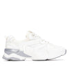 La suola chunky dal design sportivo assicura comfort, stabilità e un tocco trendy, rendendola perfetta per look casual e sporty chic. I dettagli grigi aggiungono contrasto e modernità al design total white.