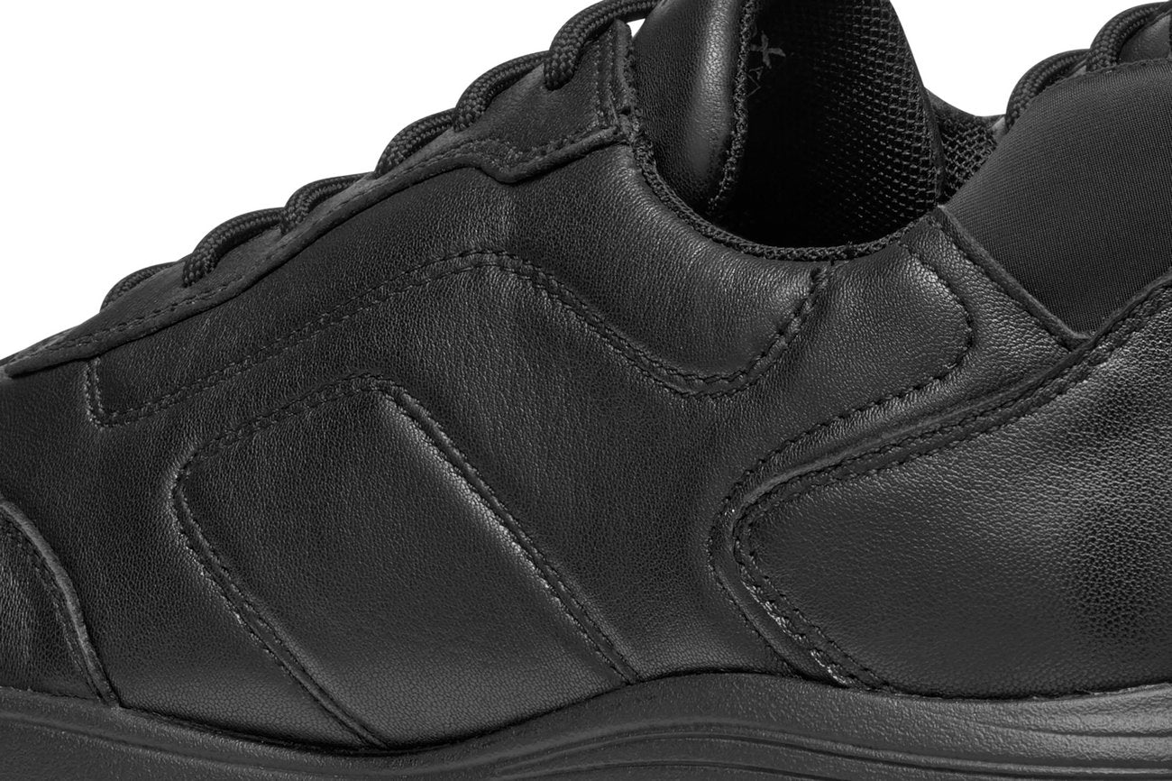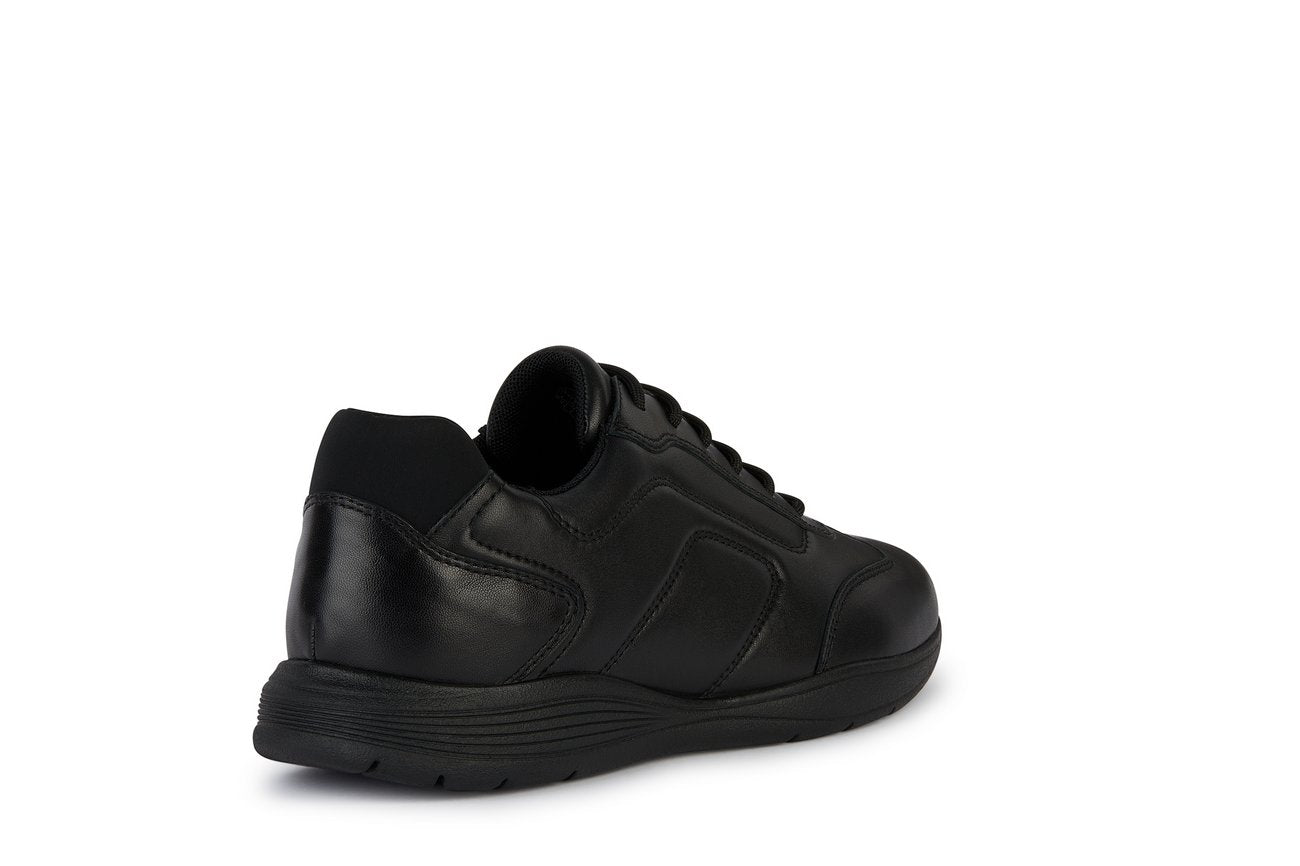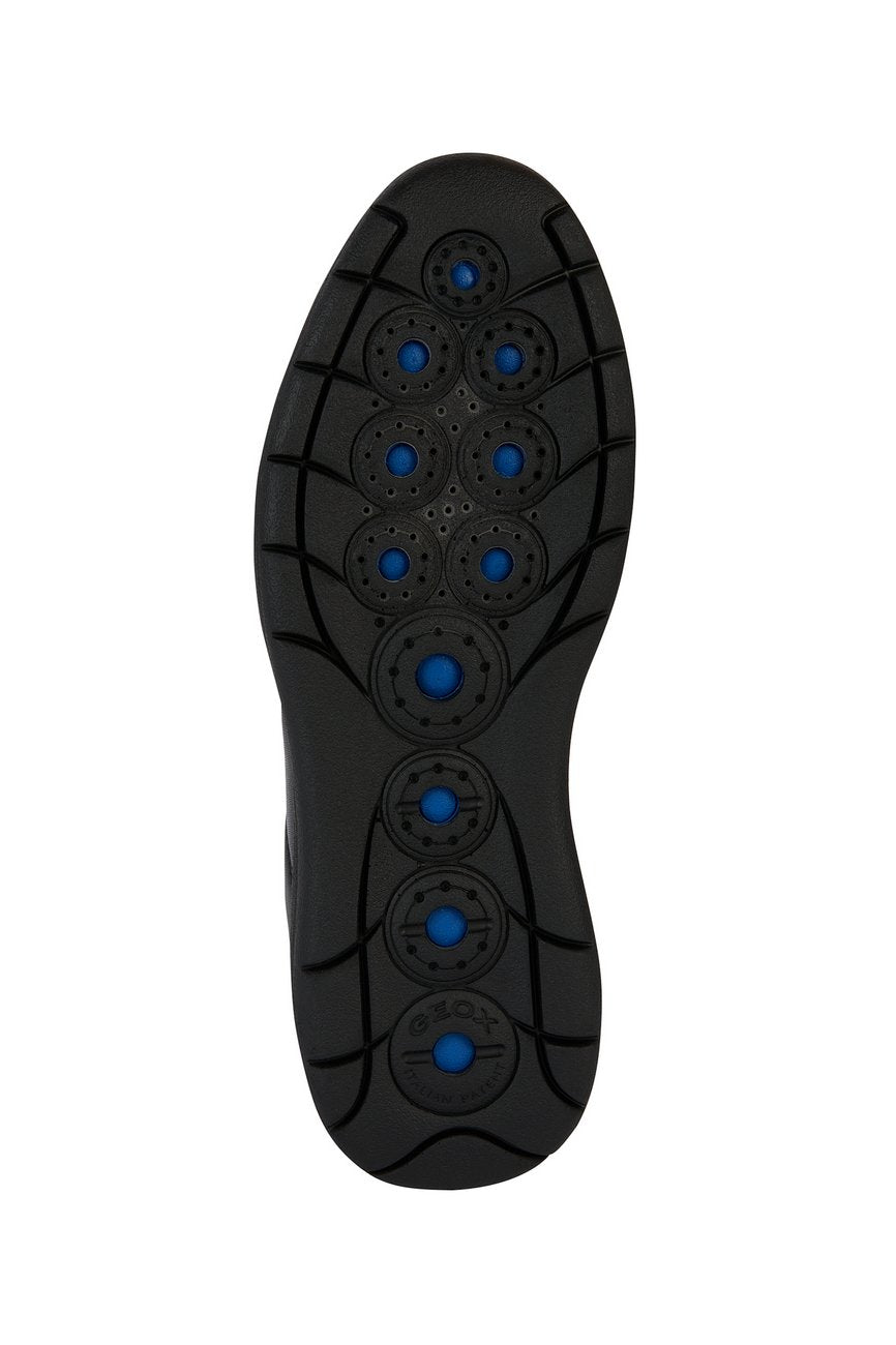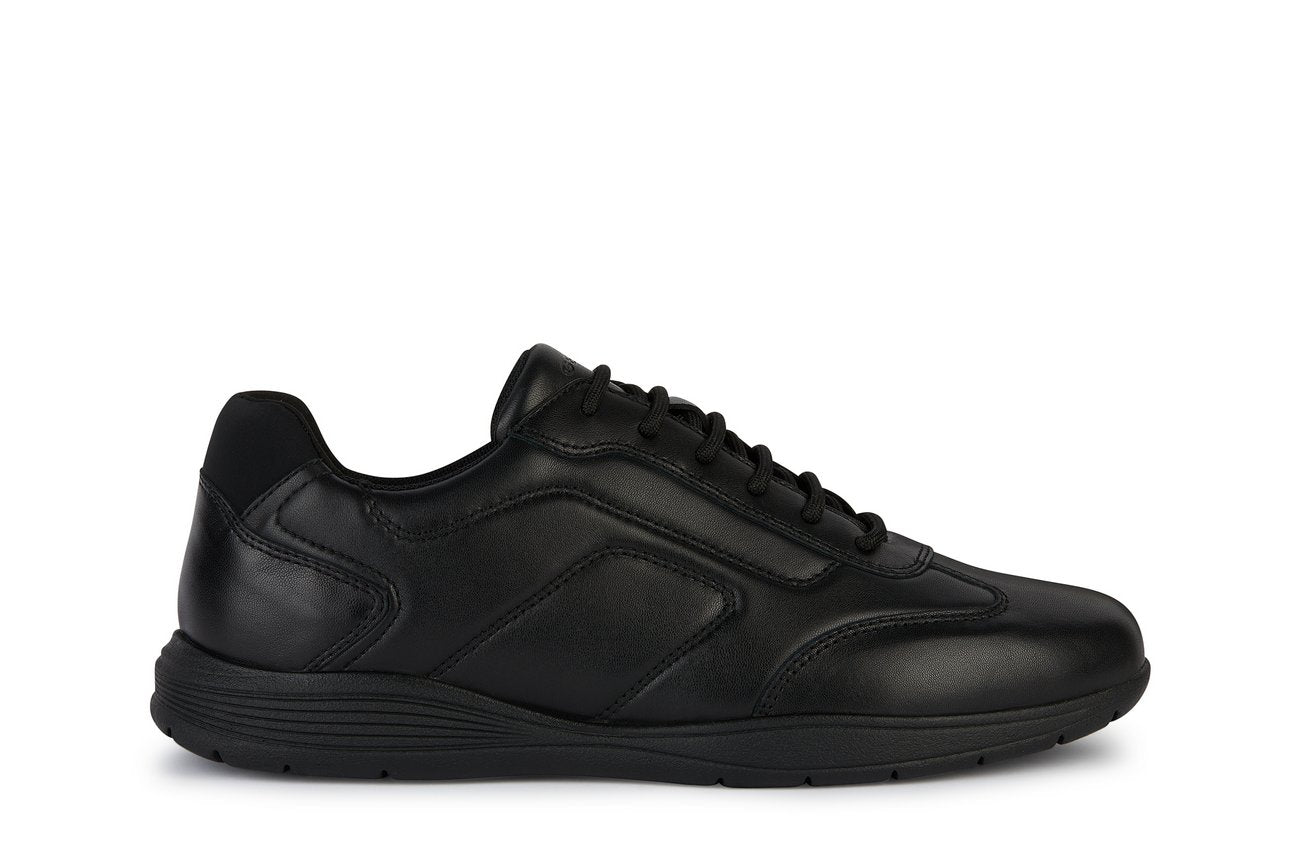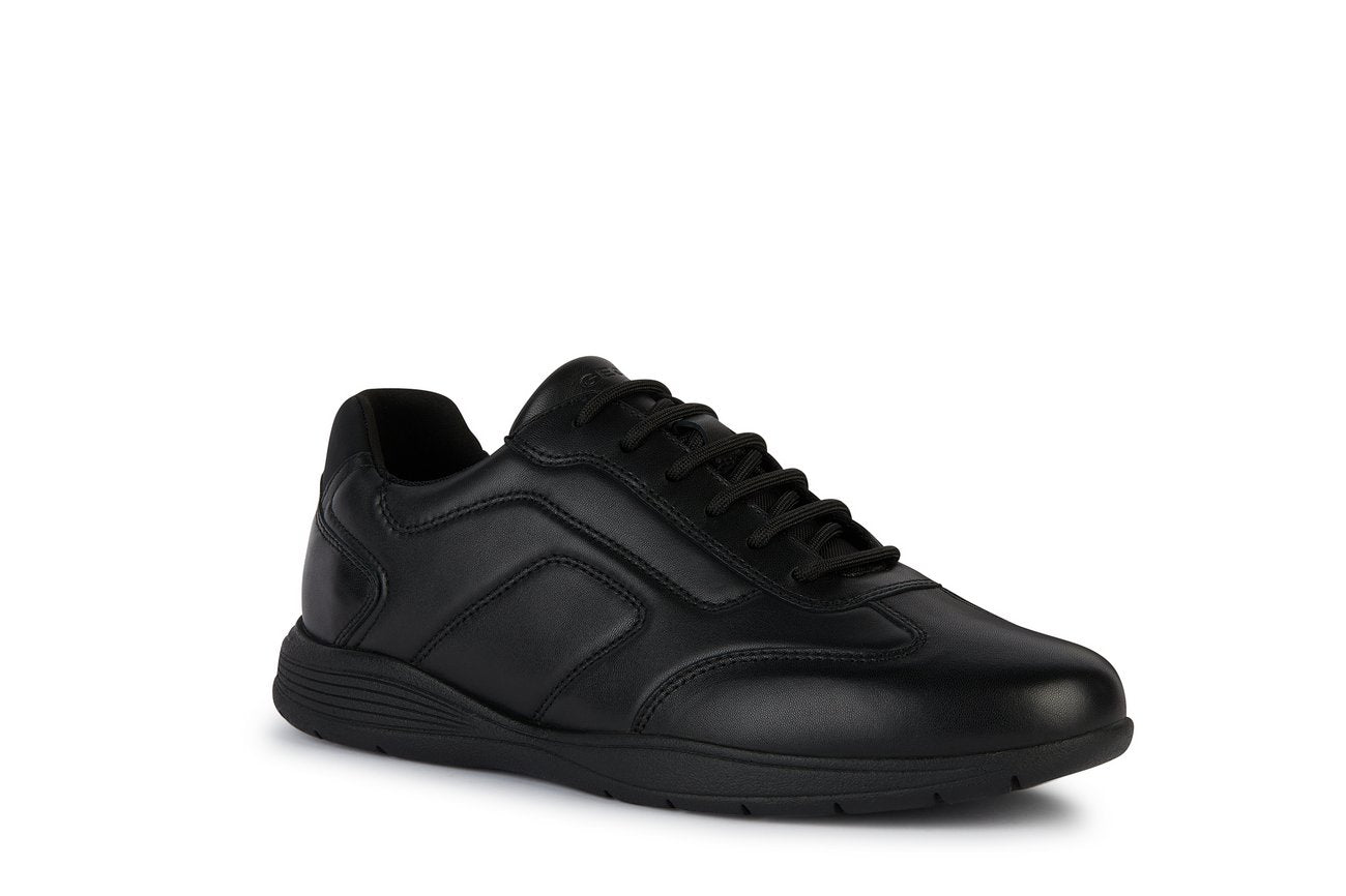 Realizzata in pelle nera di qualità, presenta linee essenziali e un look versatile, perfetto per abbinamenti casual e sportivi. La suola è dotata di tecnologia Zero Shock System, con speciali sfere ammortizzanti che assorbono gli urti e garantiscono un comfort prolungato. Inoltre, la tecnologia traspirante GEOX mantiene il piede asciutto e fresco durante tutta la giornata.