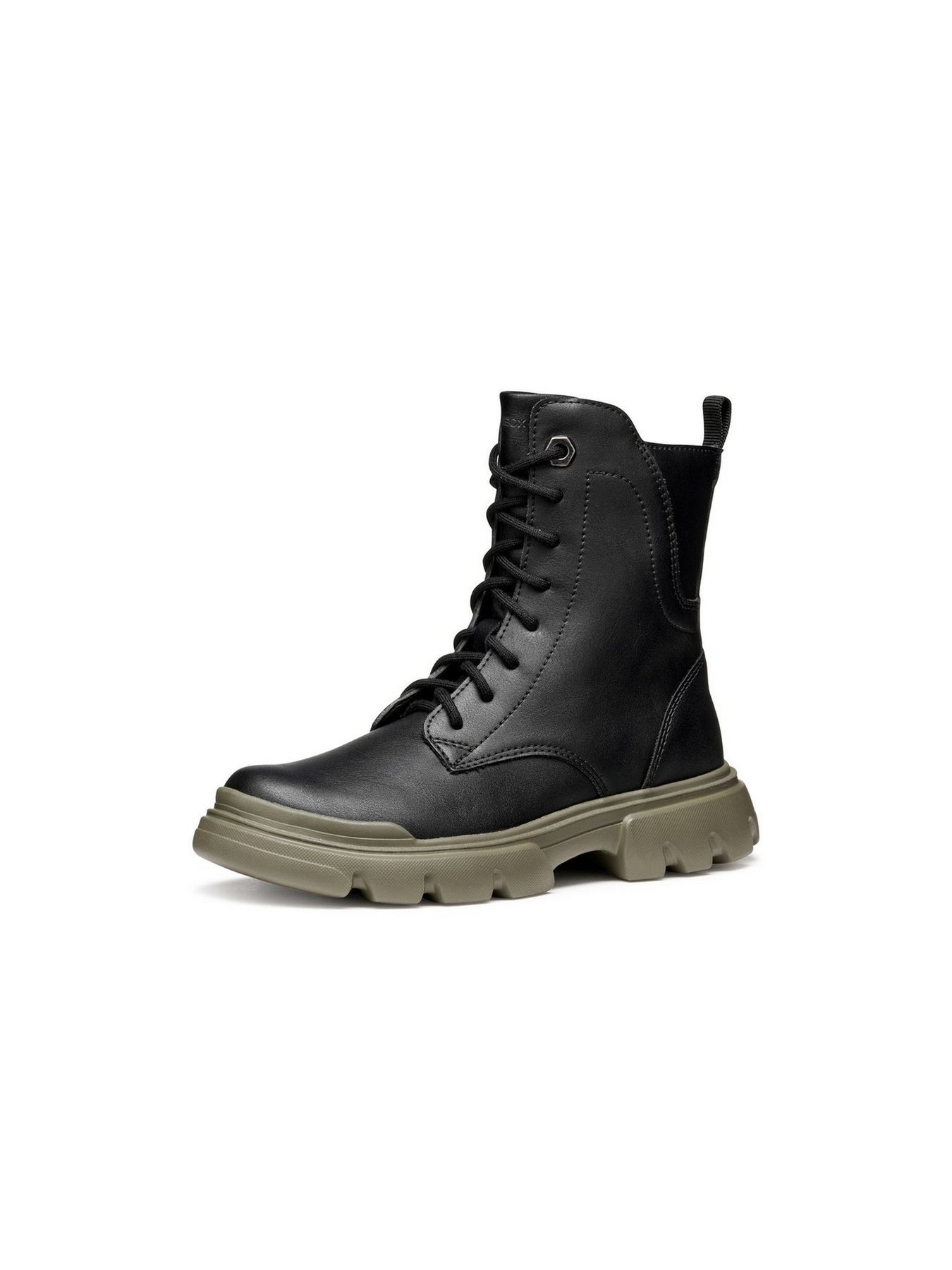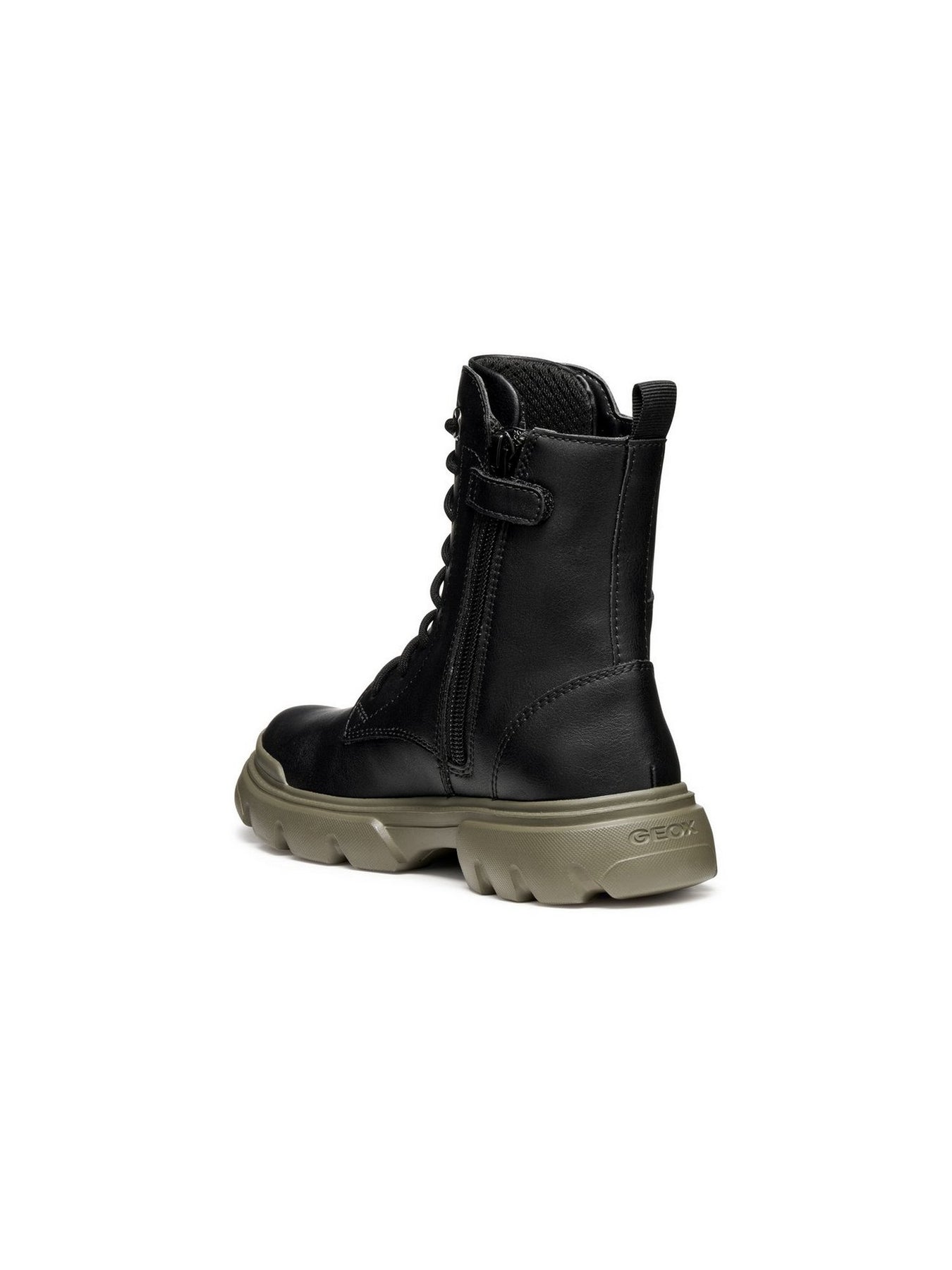 Il modello GEOX Junette Girl Black/Olive è un anfibio di tendenza che unisce stile urban e comfort, pensato per bambine che amano un look deciso e moderno.