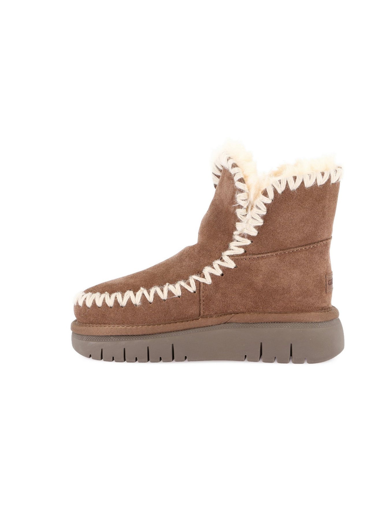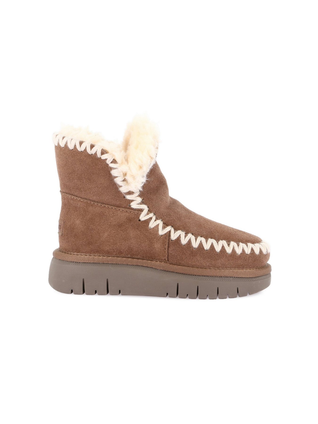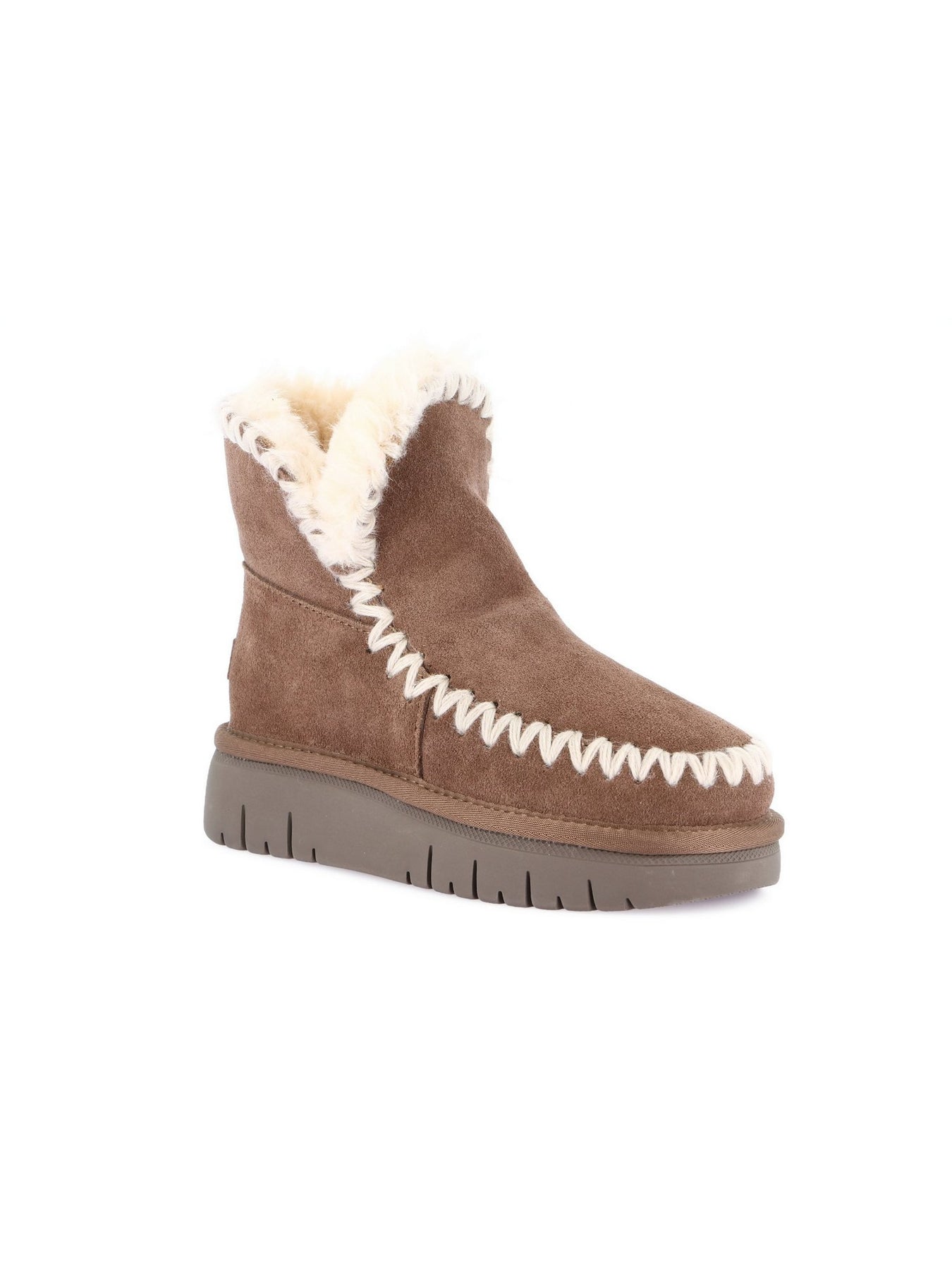 Realizzato in morbido materiale scamosciato dall'effetto vellutato, presenta cuciture bianche a vista che aggiungono un tocco di stile artigianale. La fodera interna in pelliccia sintetica assicura morbidezza e calore costante, mentre la suola in gomma leggera e antiscivolo garantisce comfort e sicurezza ad ogni passo.