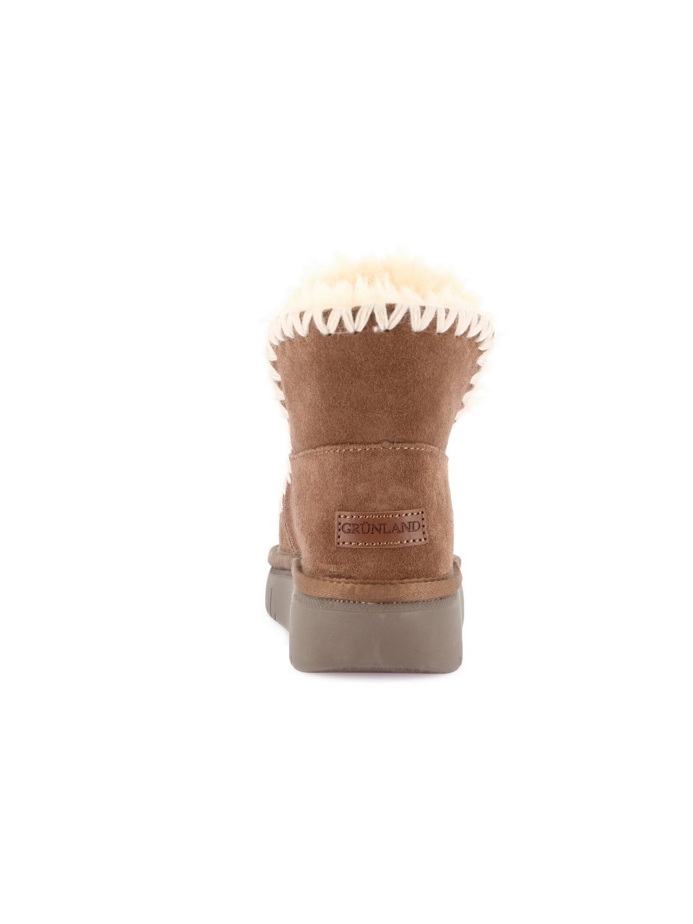 GRUNLAND Scarponcino Bambina - PO1837 Terra Scarponcino in tessuto scamosciato color terra con cuciture decorative a contrasto e fodera interna in pelliccia