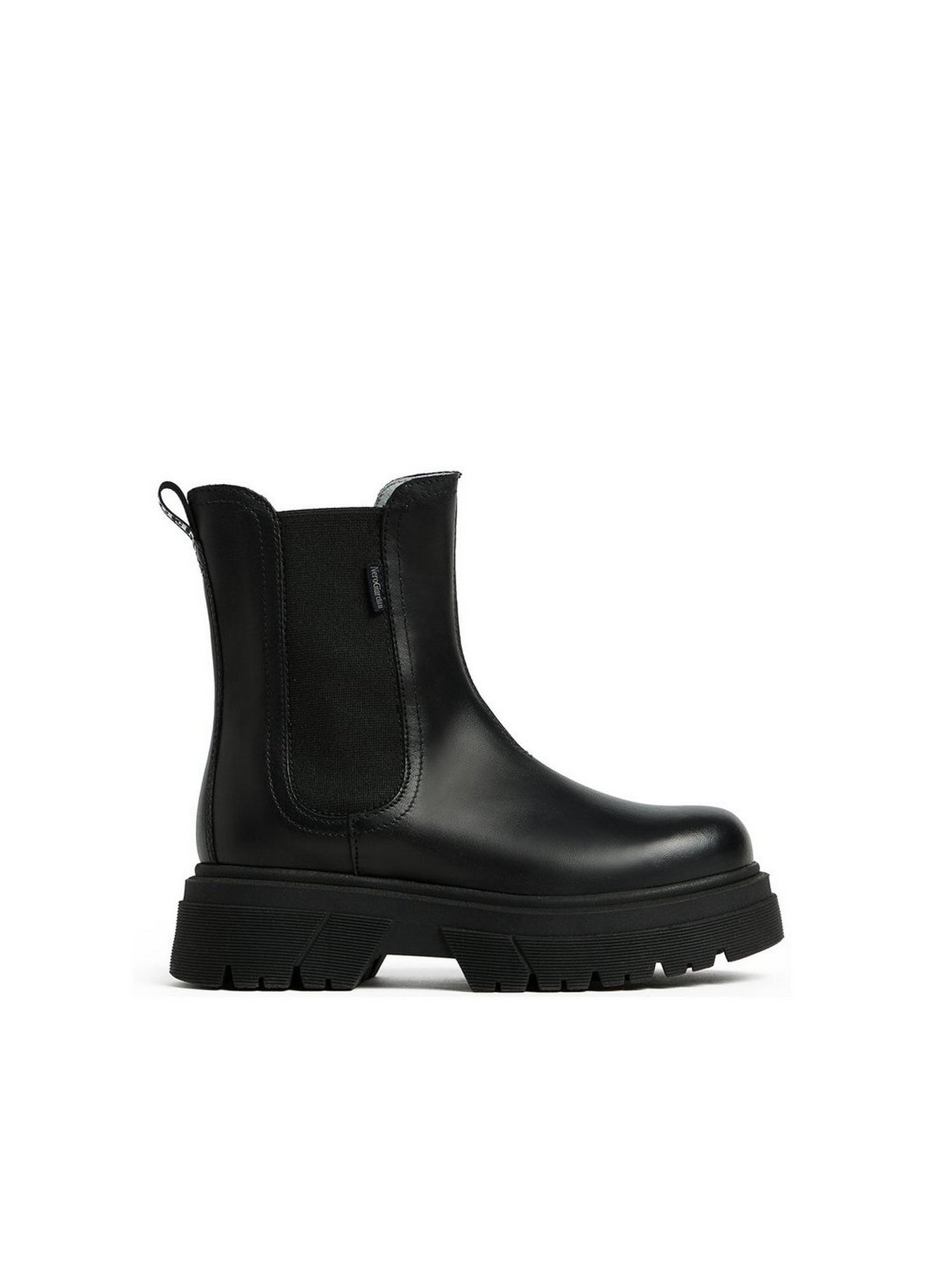 NERO GIARDINI Tronchetto Bambina - I533511F Nero Tronchetto bambina in pelle nera con elastici laterali e suola chunky, moderno e comodo.