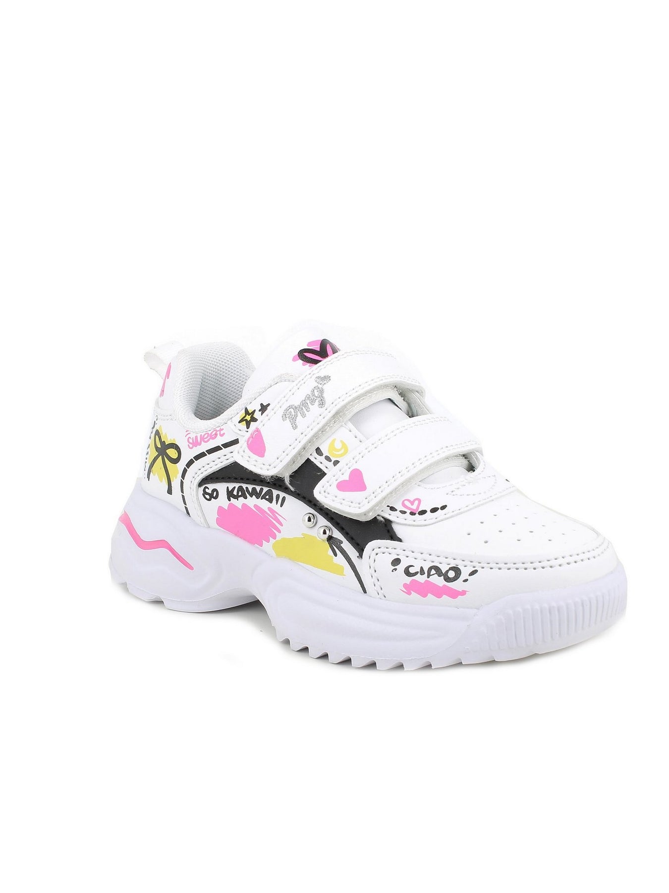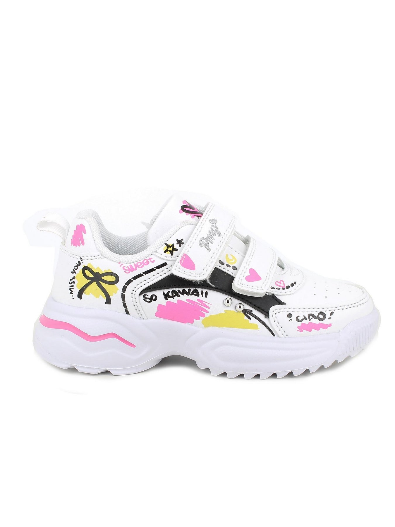 La sneaker PRIMIGI AVANT 89755 Bianco è un modello dal design vivace e moderno, perfetto per le bambine che amano distinguersi. Realizzata in materiale bianco, è decorata con grafiche colorate nei toni del rosa, giallo e nero e dettagli scritti in stile urban.