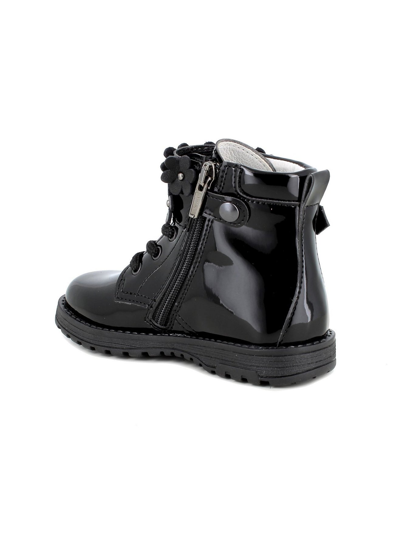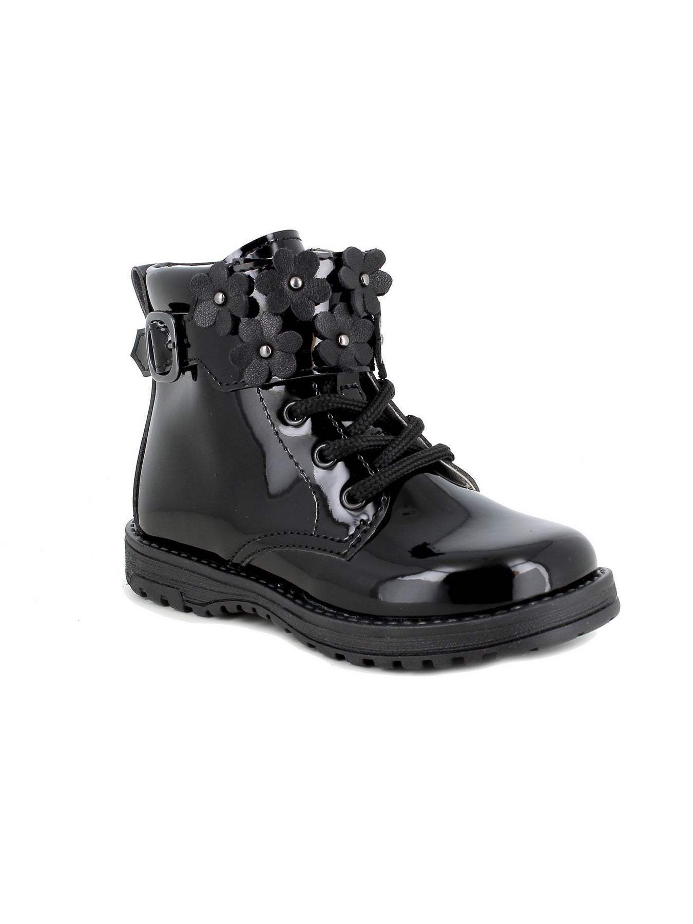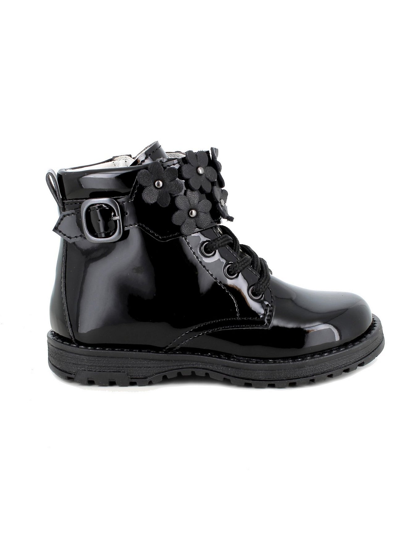 PRIMIGI Anfibi Bambina - 89136 Nero in vernice con applicazioni floreali e suola antiscivolo