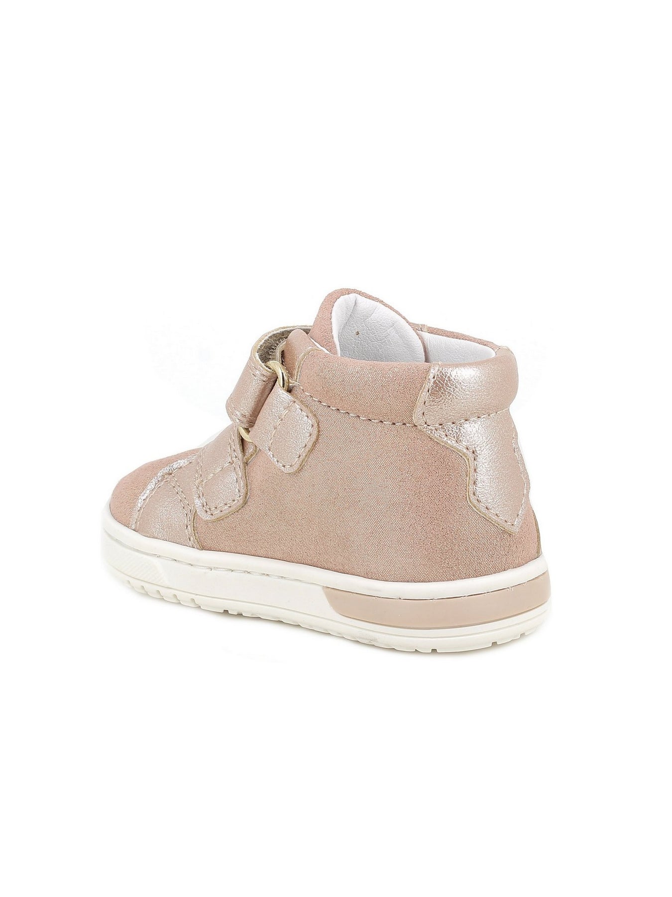 La sneaker PRIMIGI 89062 Carne è pensata per le prime avventure delle bambine, coniugando comfort e stile. Realizzata in pelle scamosciata e materiale effetto perlato rosa carne, è decorata con una grande stella dorata laterale e piccoli inserti luminosi che donano un tocco fashion.