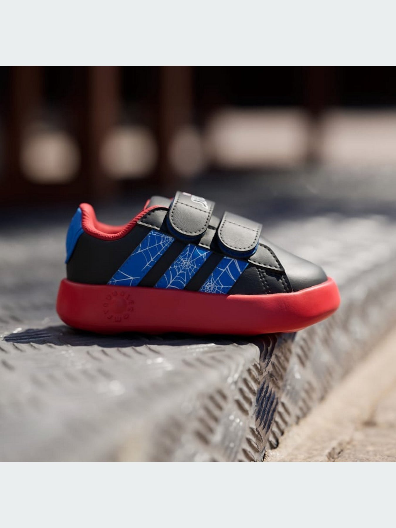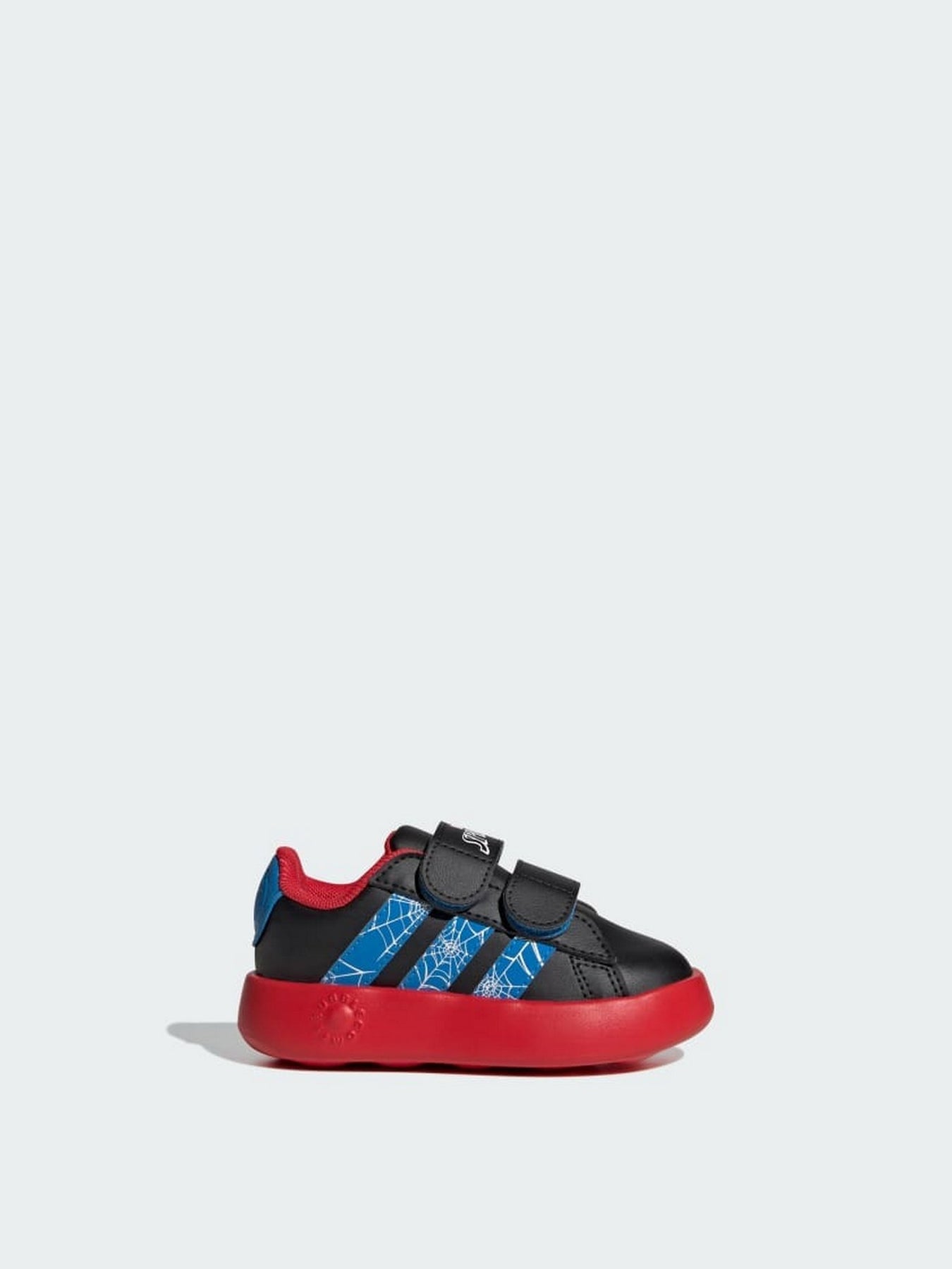 Le sneakers bambino ADIDAS Grand Court Spider-Man JQ7828 Nero portano l'energia del supereroe più amato direttamente ai piedi dei più piccoli. Perfette per i bambini che vogliono unire stile sportivo e passione per i personaggi Marvel.
