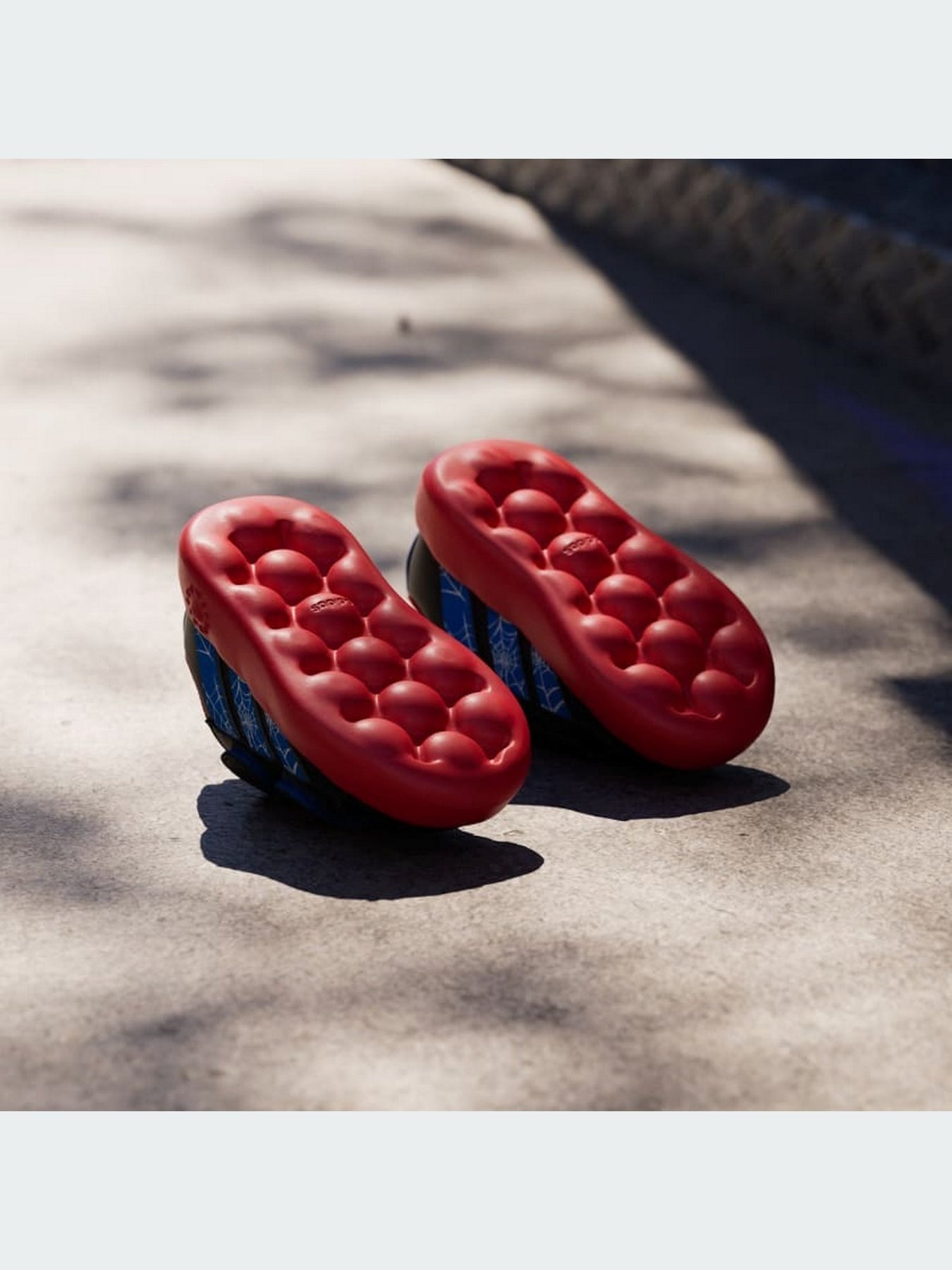 Realizzate in pelle sintetica nera, sono arricchite dalle iconiche 3-Strisce adidas blu con grafiche ragnatela e dettagli rossi che richiamano il costume di Spider-Man. La chiusura con doppio strap a velcro rende la calzata semplice, veloce e sicura, ideale per i più piccoli.