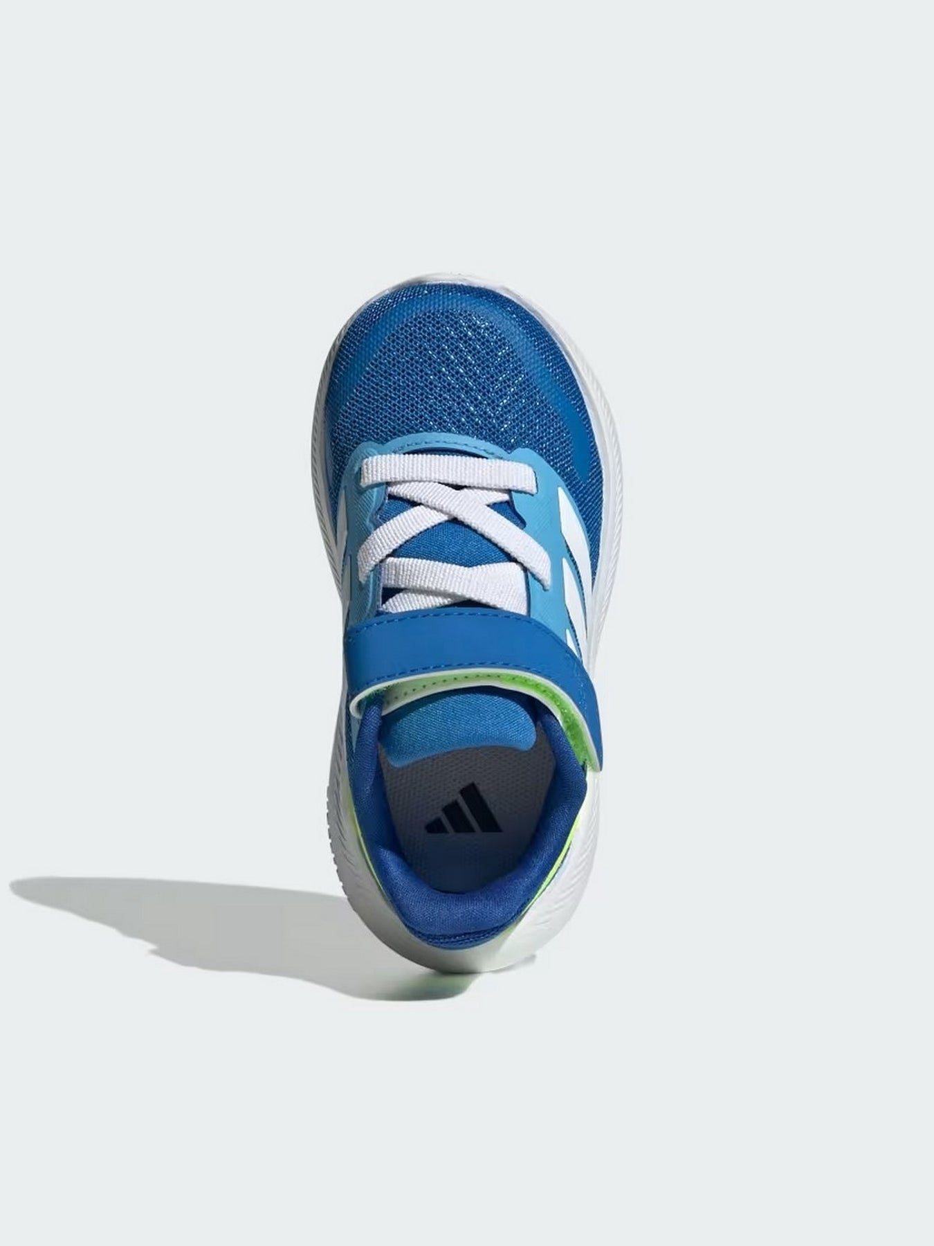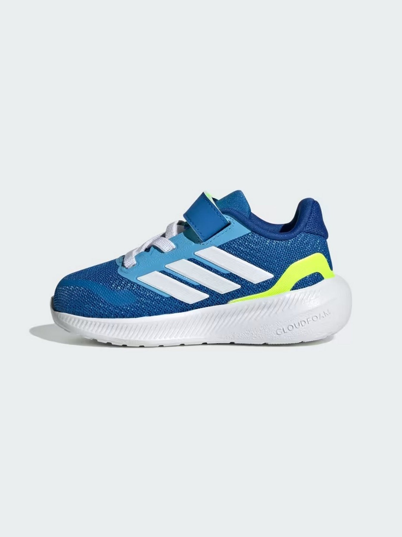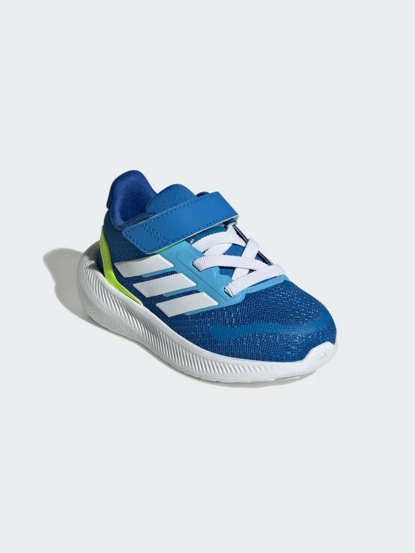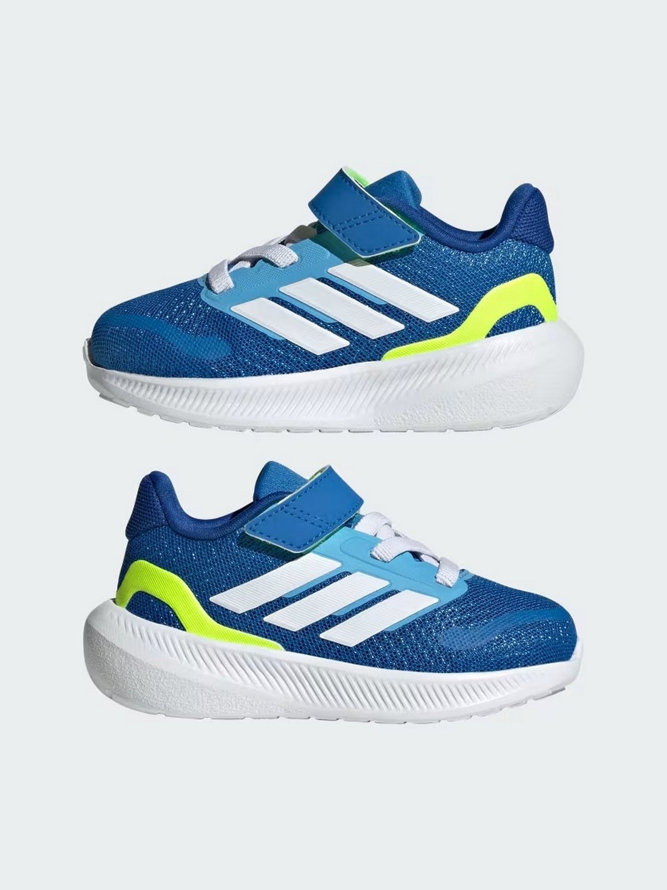 Le ADIDAS Runfalcon 5 Royal/White/Lemon da bambino uniscono comfort, resistenza e design vivace. La tomaia in mesh blu royal con rinforzi sintetici assicura traspirabilità e supporto, mentre le iconiche 3-Stripes bianche e il dettaglio giallo lime sul tallone aggiungono energia al look.