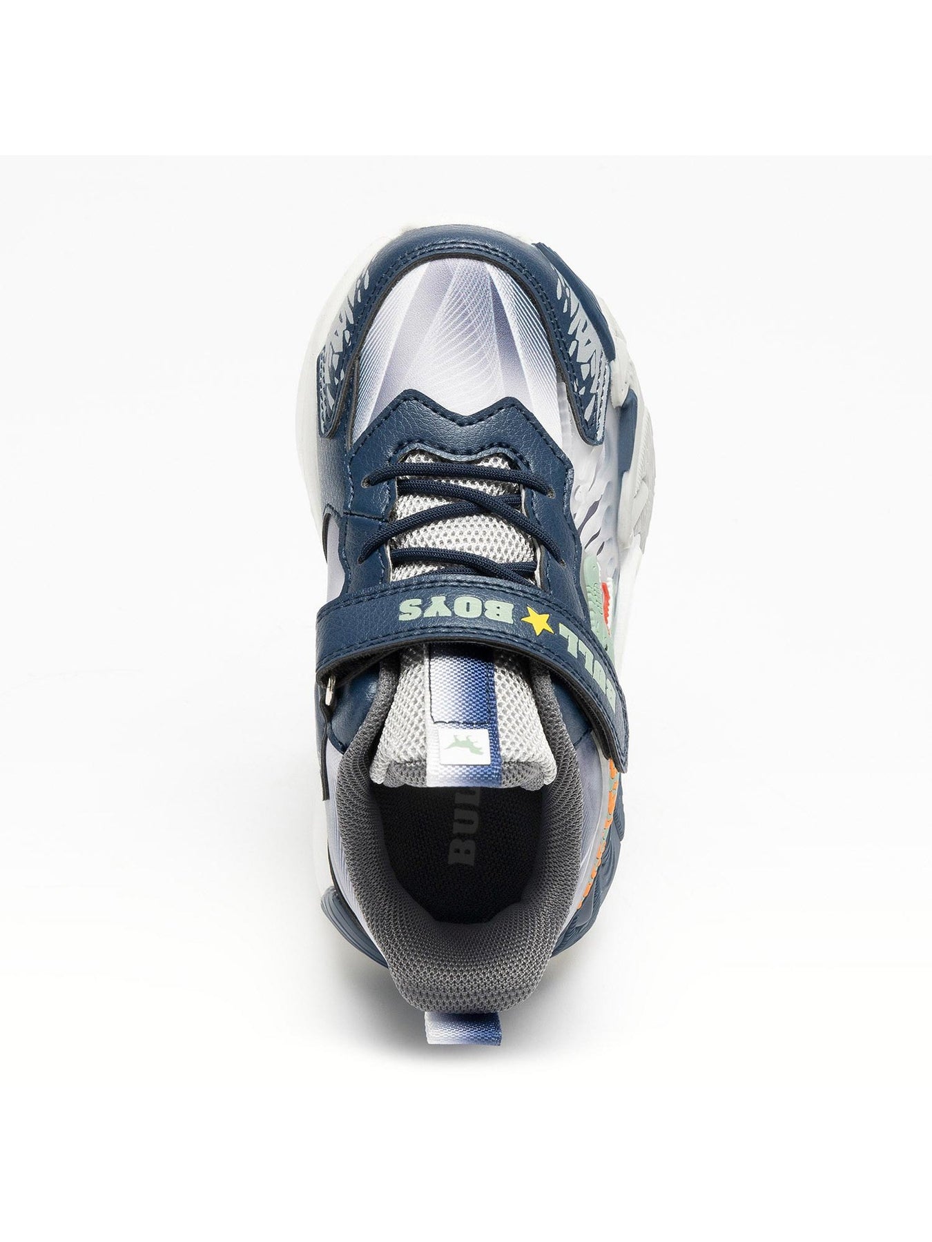 La sneaker BULL BOYS T-Rex DNAL5151A00 Blu è la scelta ideale per i bambini che amano dinosauri e avventura. La tomaia blu con dettagli grigi è arricchita da un dinosauro verde in rilievo, per un look grintoso e divertente.
