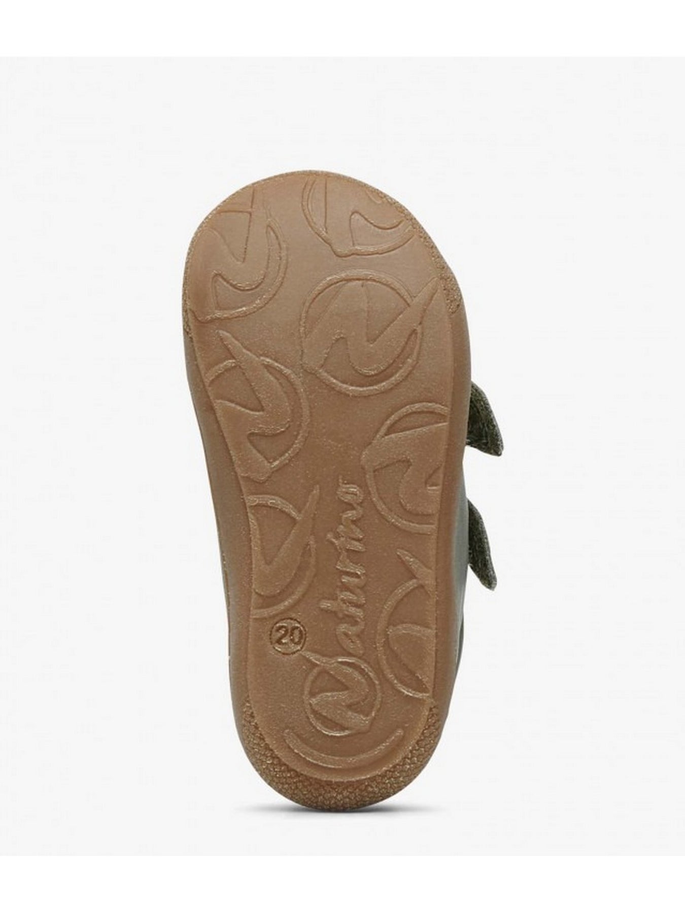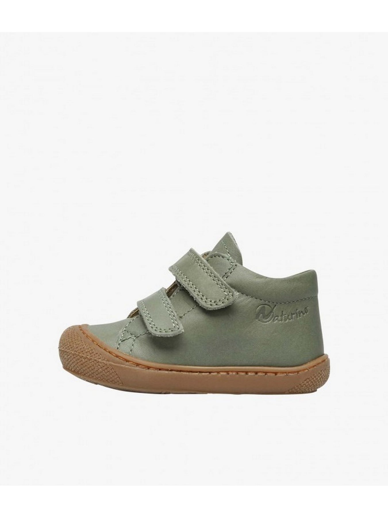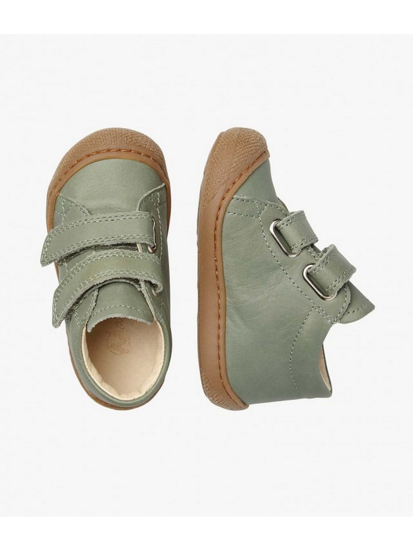 Realizzata in morbida pelle verde, presenta una doppia chiusura a strappo che assicura una calzata veloce, pratica e regolabile. La fodera interna traspirante mantiene il piede asciutto e confortevole, mentre il sottopiede anatomico favorisce il corretto sviluppo del piede.