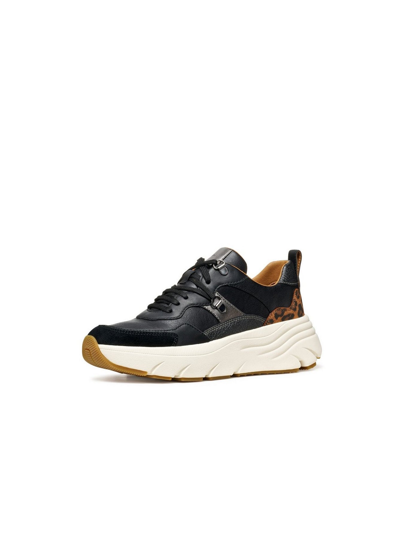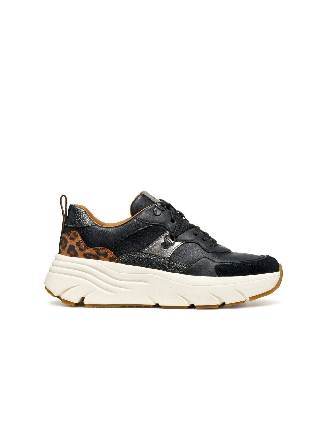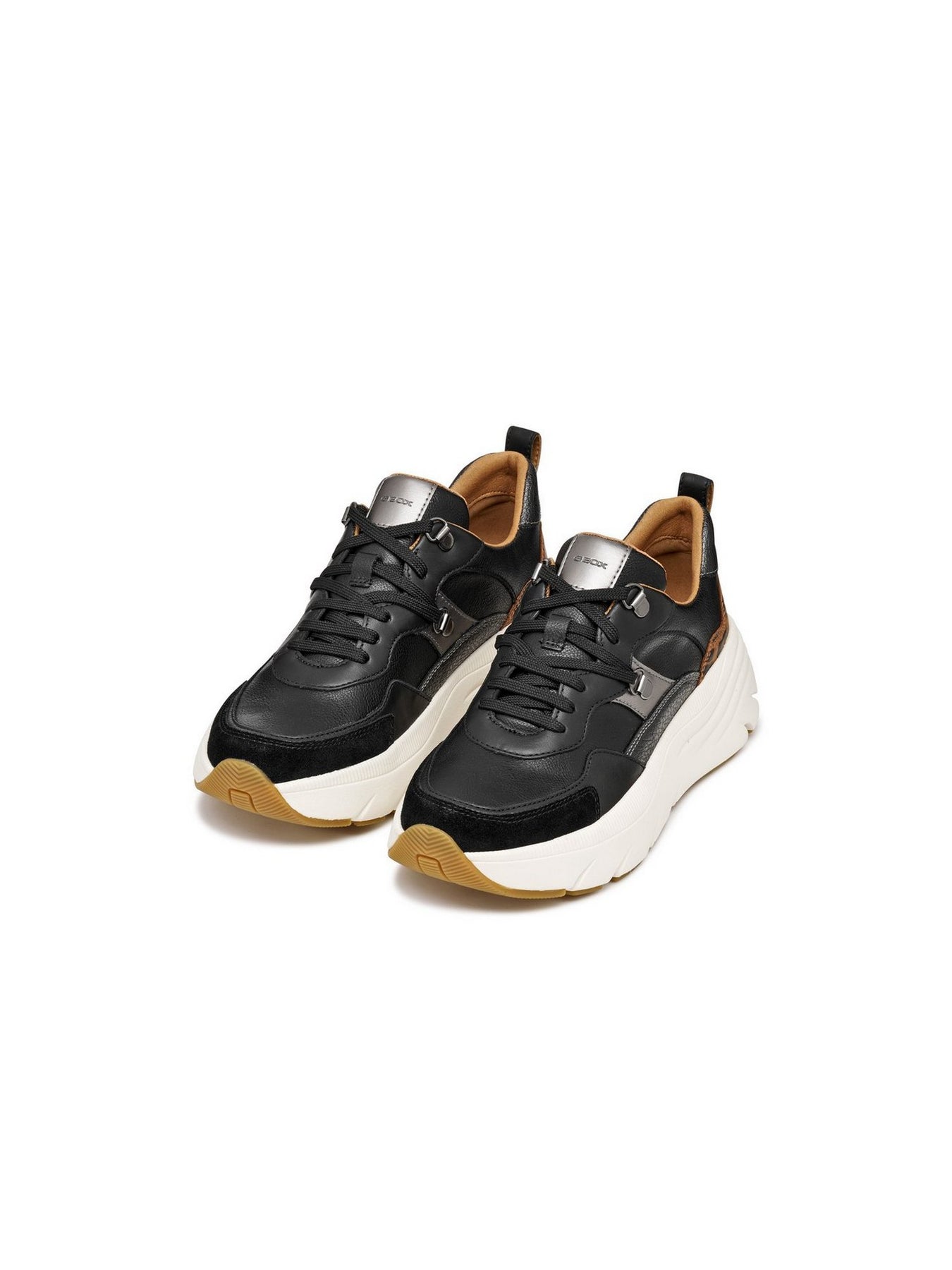 La GEOX Diamanta Black/Cognac è una sneaker dal carattere deciso e moderno, pensata per chi ama unire comfort e tendenze fashion.