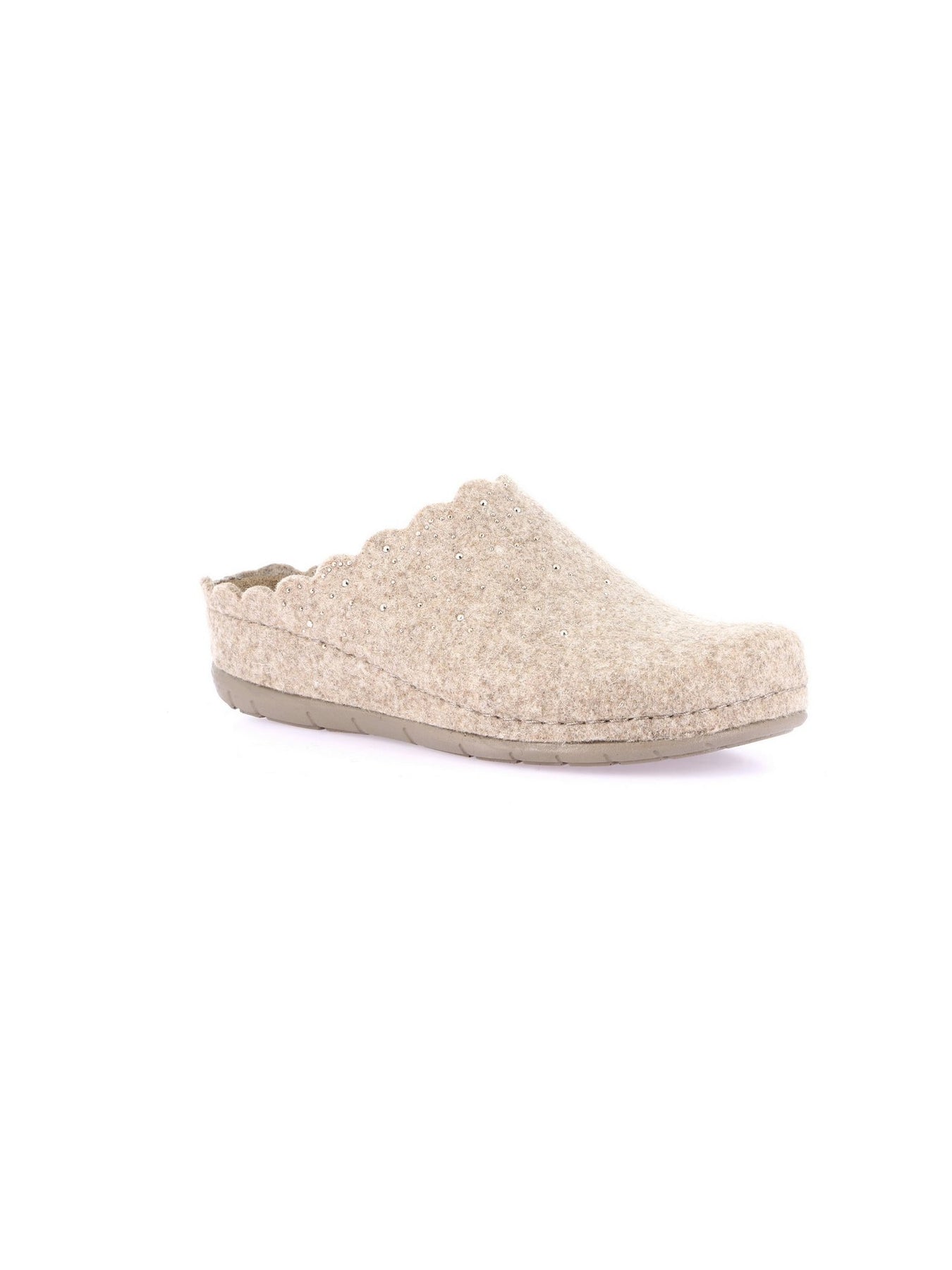 GRUNLAND Ciabatta Donna - CI1544 Beige Ciabatta in feltro beige con bordo ondulato e suola in gomma flessibile.