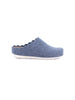 Realizzata in morbido feltro, avvolge delicatamente il piede mantenendolo al caldo e favorendo la traspirazione naturale. Il design con profilo ondulato dona un tocco raffinato e femminile, mentre la suola in gomma leggera e flessibile assicura stabilità, aderenza e durata nel tempo.