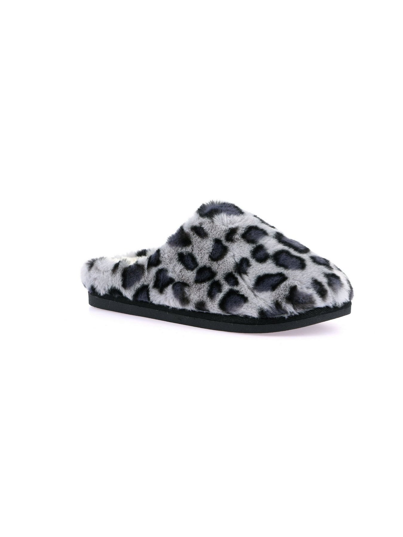 GRUNLAND Ciabatta Donna - CI1589 Blu Ciabatta in morbida eco-pelliccia con stampa animalier sui toni del blu e suola leggera nera.