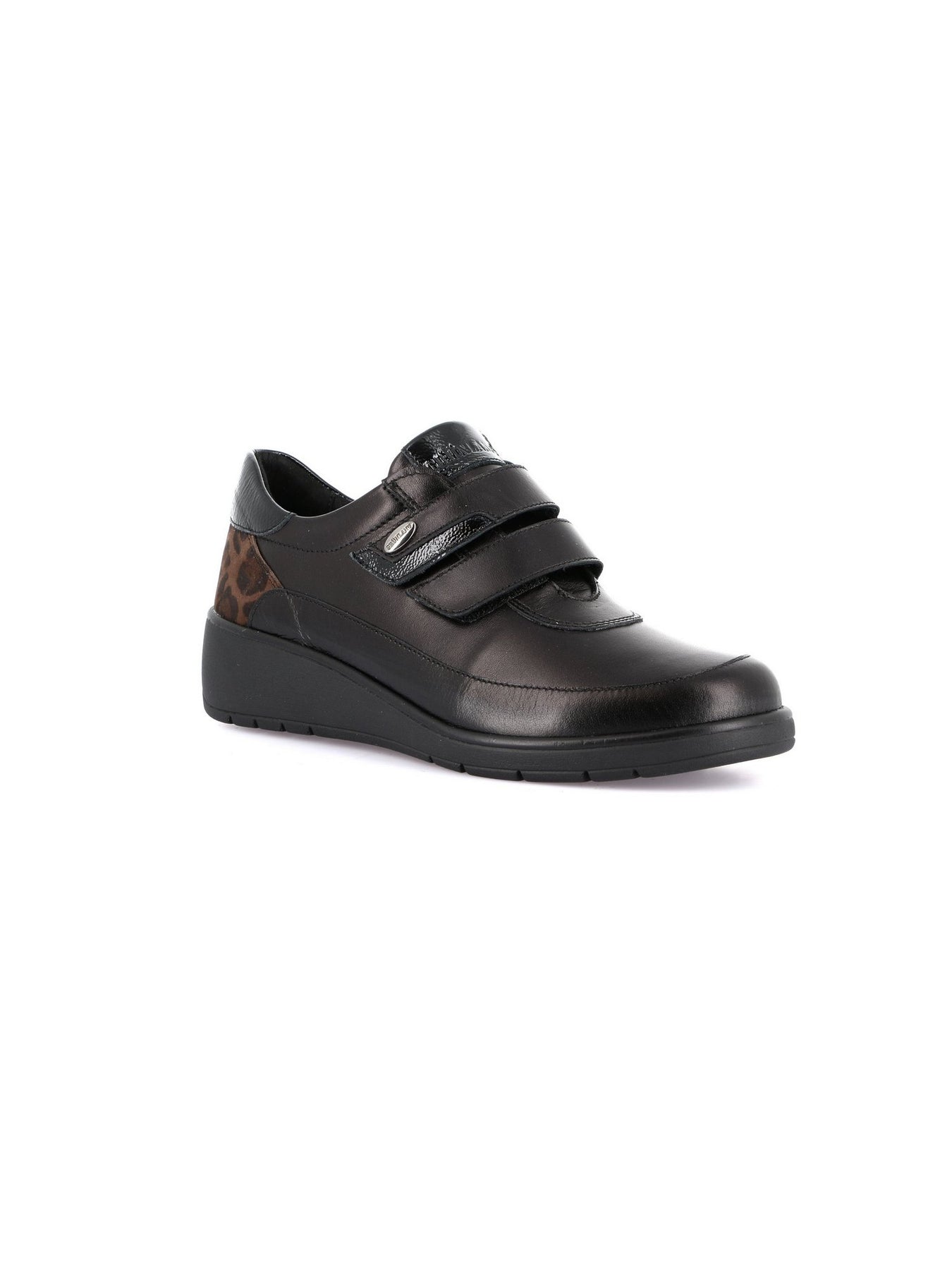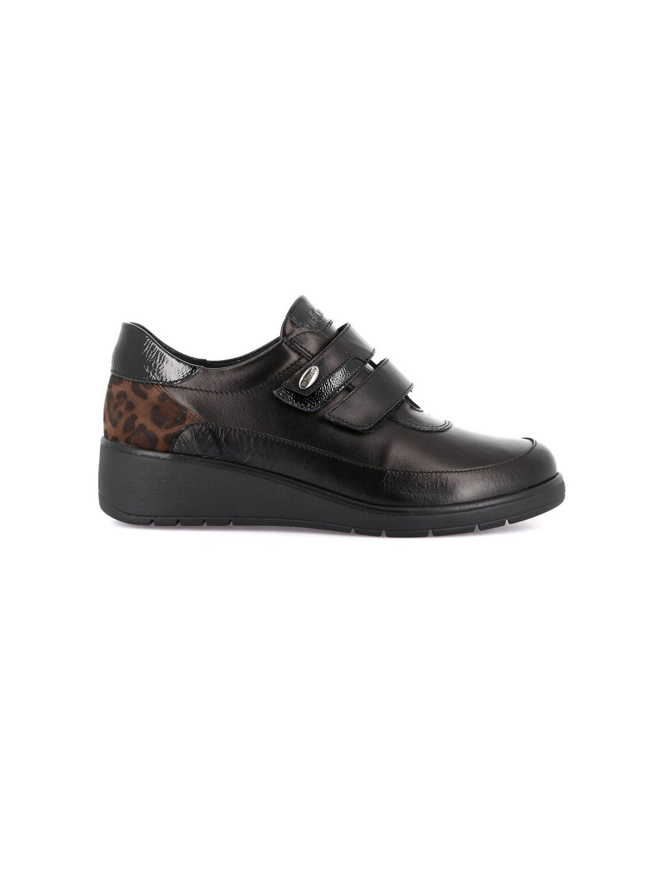 La suola in poliuretano, leggera e resistente, presenta un tacco di 4,3 cm che favorisce una postura comoda e stabile. La doppia chiusura a strappo garantisce una calzata semplice e regolabile, perfetta per l'uso quotidiano e per chi cerca una scarpa con un mix di stile e funzionalità.