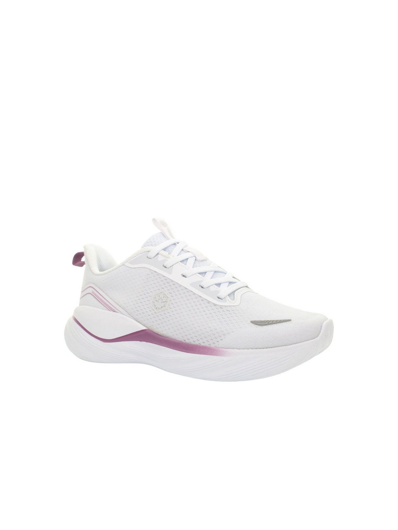 Tomaia Esterna: realizzata in tessuto tecnico traspirante con inserti sintetici nella tonalità bianco con dettagli rosa, progettata per offrire leggerezza, flessibilità e uno stile sportivo contemporaneo